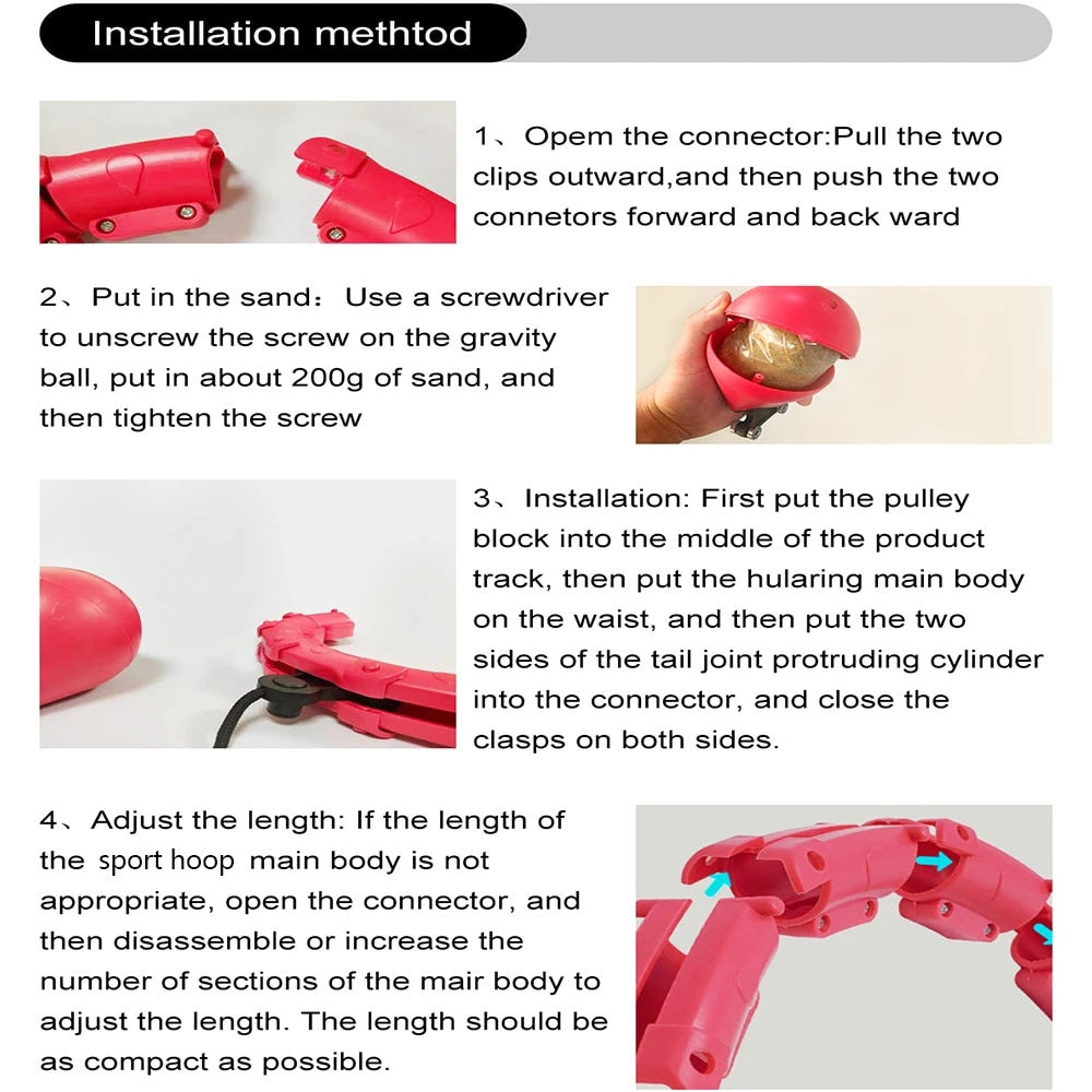 With its 24 connectors and hard tube design, our fitness hoop is suitable for waists up to 120cm (47in), ensuring a challenging workout that will get your heart pumping. The adjustable design and detachable smart sport hoops allow you to customize your workout to suit your needs, making it perfect for both fitness enthusiasts and beginners.