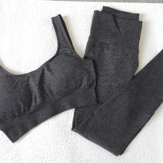 2 Pieces/Set Seamless Fitness Women Yoga Suit High Stretchy Workout Sport Set Padded Sports Bra High Waist Sports Legging Gym