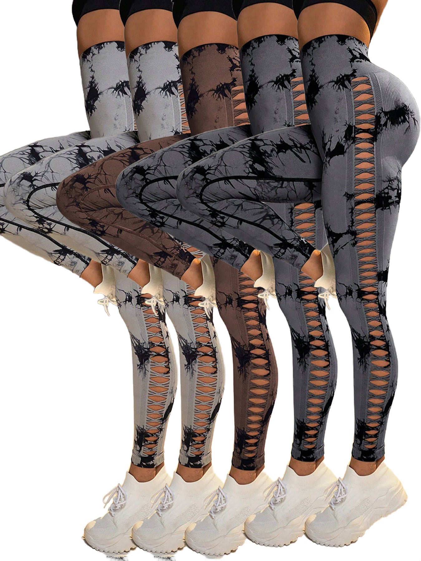 5 Pack Women's Tie-Dye Cutout Yoga Pants High-Waisted Leggings Women's Tie-Dye Leggings,, Leggings Women High Waisted Seamless Workout Leggings Gym Booty Tights Tummy Control Yoga Pants