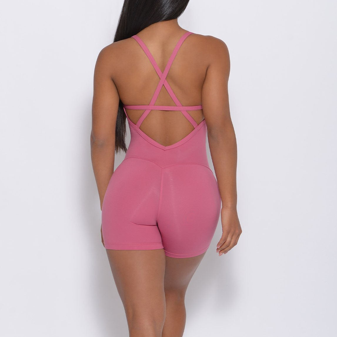 Backless Sports Jumpsuit Woman Lycra Fitness Overalls One Piece Shorts Sport Outfit Gym Workout Clothes for Women Sportwear
