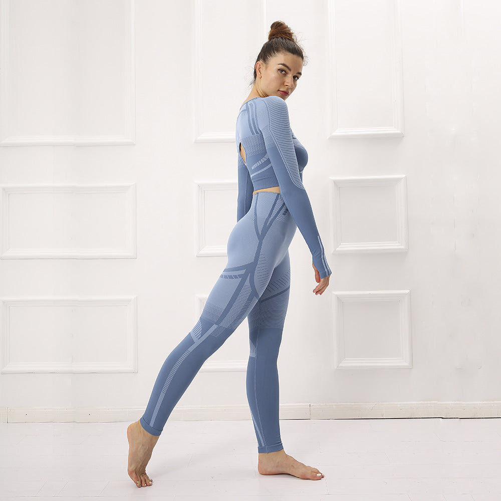 Belly Button Yoga Beauty Back Long-Sleeved High-Waist Stretch Trousers Sports Gym Suit
