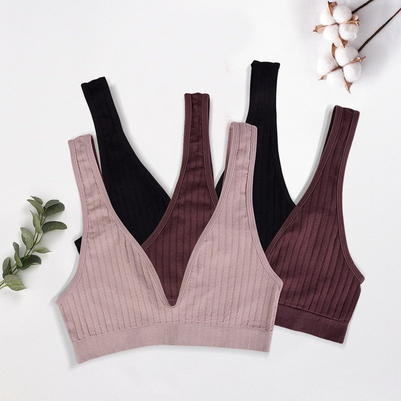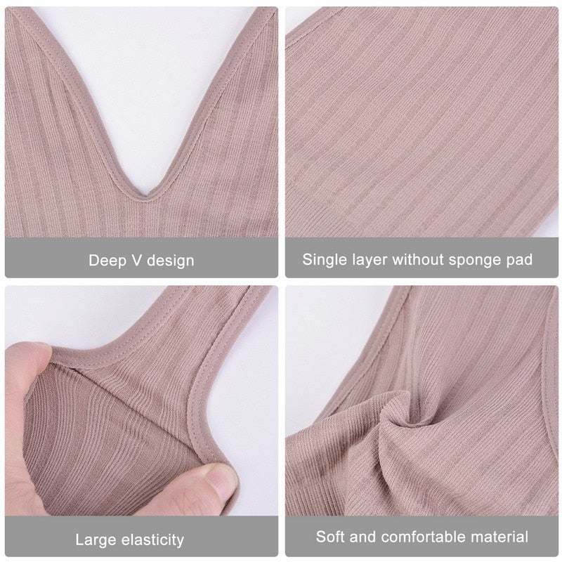 This web page offers a sexy and comfortable deep V neck bra that is perfect for any occasion. The seamless design makes it invisible under clothing, while the wire-free and unlined construction ensures maximum comfort. The low back and push-up feature make it ideal for party, club, and wedding wear. This bra top is made from high-quality cotton material that is breathable and comfortable, making it perfect for daily wear, school, or yoga. Available in M and L sizes, this bra top is a new arrival for Spring Summer 2021. Its halterneck-style and cropped design make it a must-have addition to any lingerie collection. Order now and enjoy the benefits of this seamless sports bra. Accepting dropshipping orders, this bra top is the perfect gift for women, girls, ladies, and females who want to feel sexy and comfortable.
