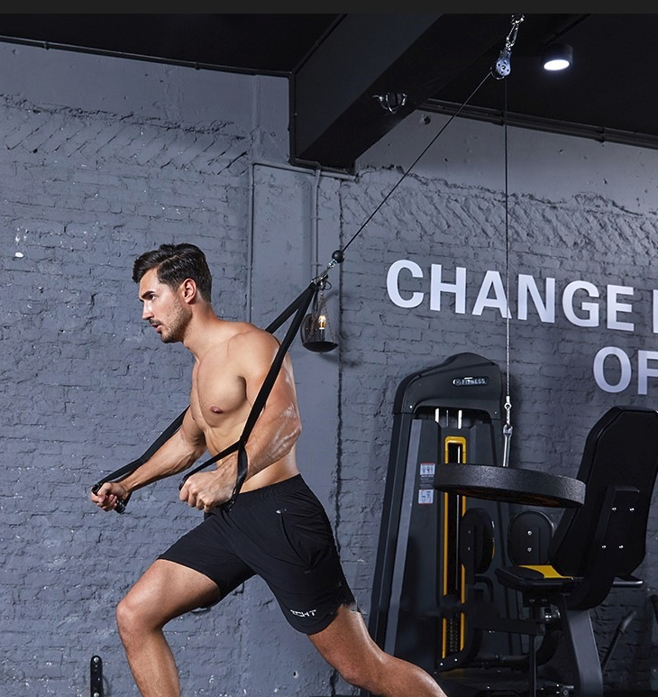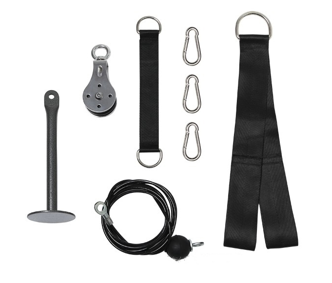 - B: 5# pulley + lanyard + carabiner + triceps belt
