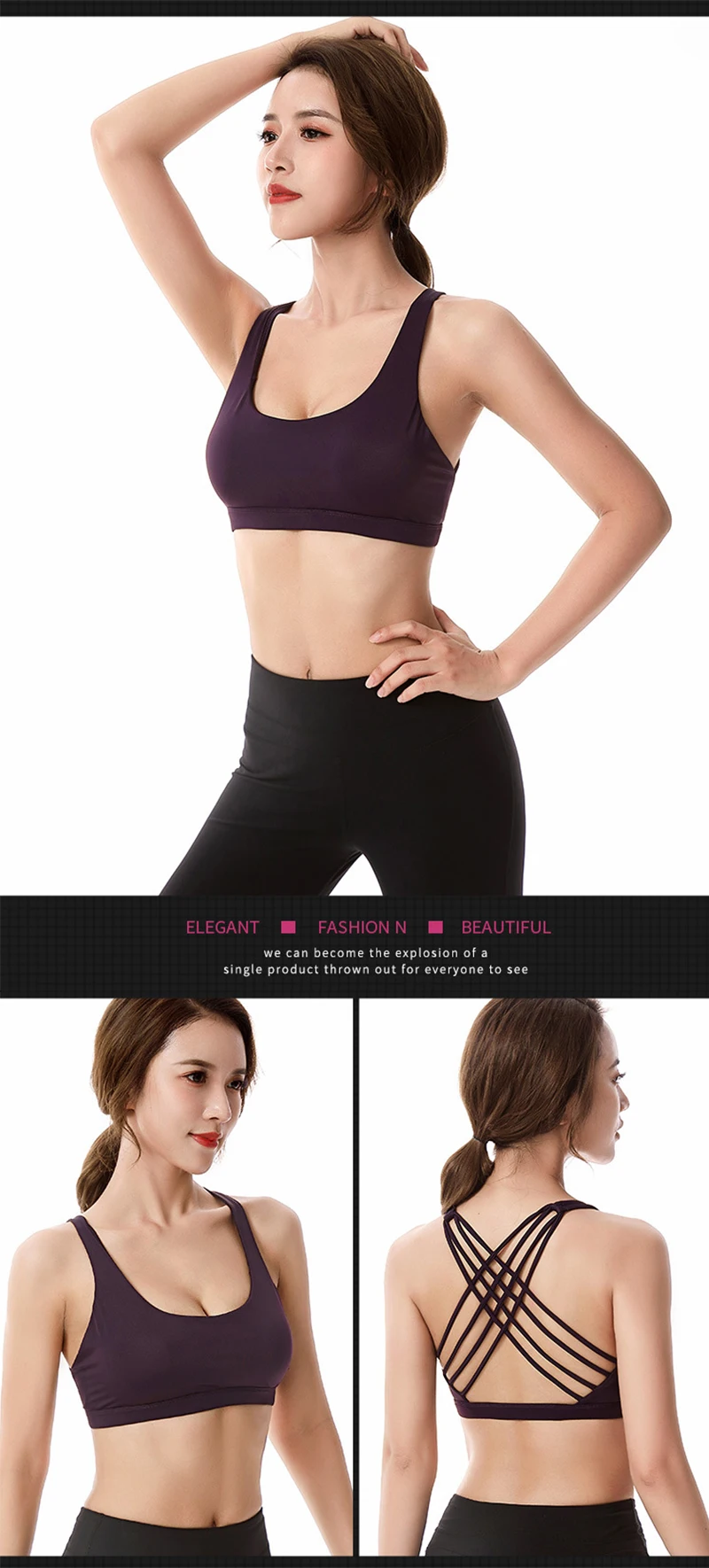 Introducing our latest addition to our women's fitness collection- the New Fitness Sports Bra! This bra is designed to provide maximum support while you sweat it out in the gym or on the track. With its push-up feature, you can now enjoy a flattering look while working out. The cross-back design ensures that you get the perfect fit and the shockproof technology guarantees that you stay comfortable throughout your workout. This bra is not just great for workouts, it also doubles as yoga underwear and crop tops. Its versatility makes it a must-have in every female fitness enthusiast's wardrobe. Whether you are a beginner or a pro, this bra is perfect for all your fitness needs. So, what are you waiting for? Get your hands on this amazing sports bra and take your workout to the next level! Order now and experience the difference!
