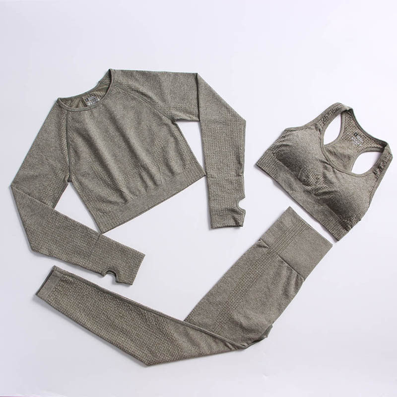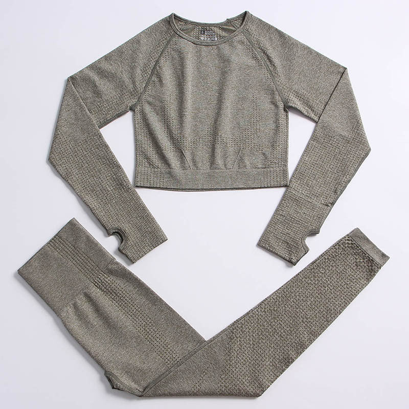 Fitness Sports Yoga Clothing Suit Women Seamless Quick-drying Stretch Knit Long Sleeves