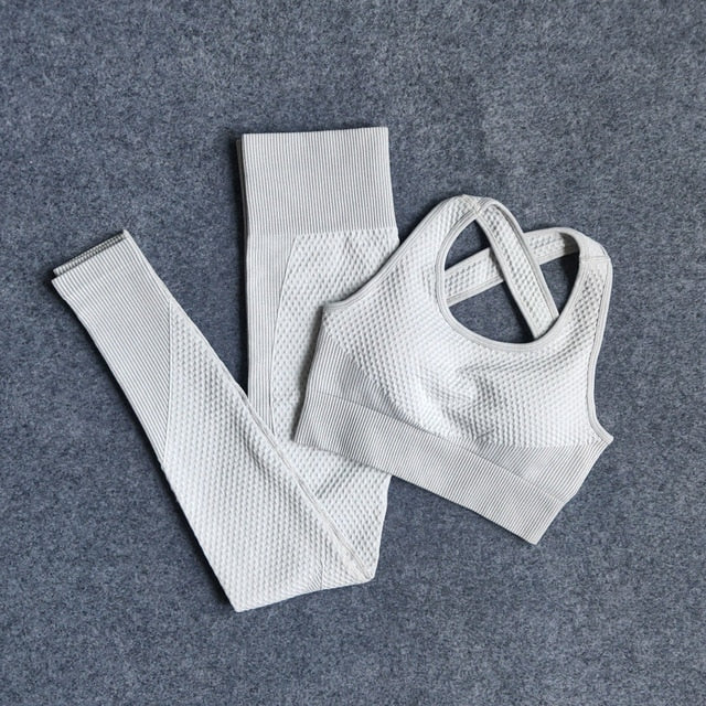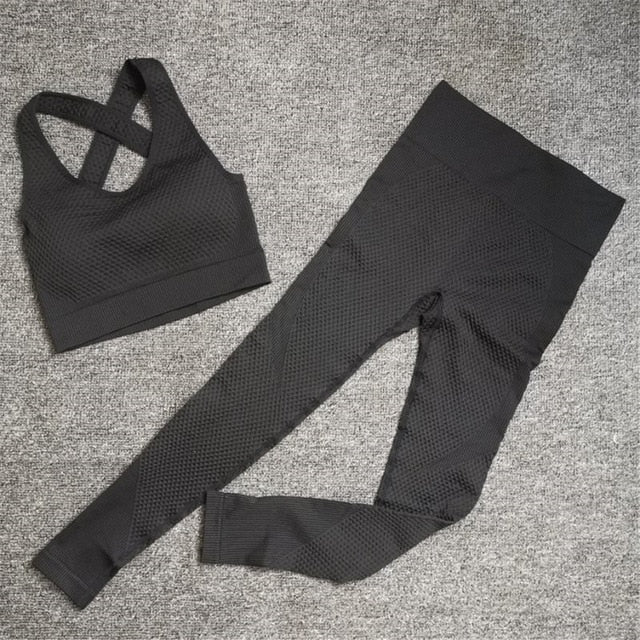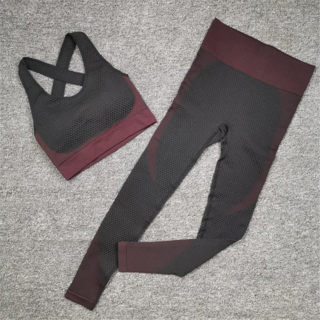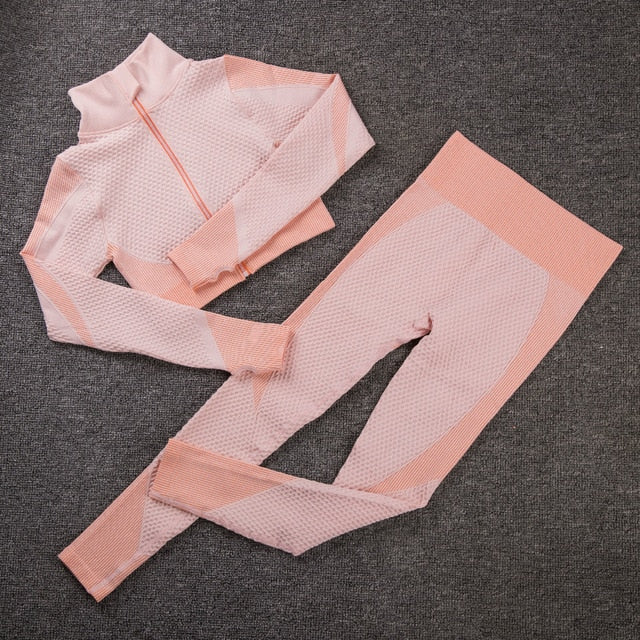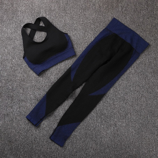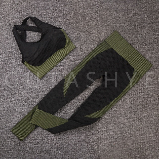 Sport Suit Woman Seamless Running Tracksuit Sportswear Gym Crop Top Yoga Pant Fitness Clothes Workout Leggings Yoga Set