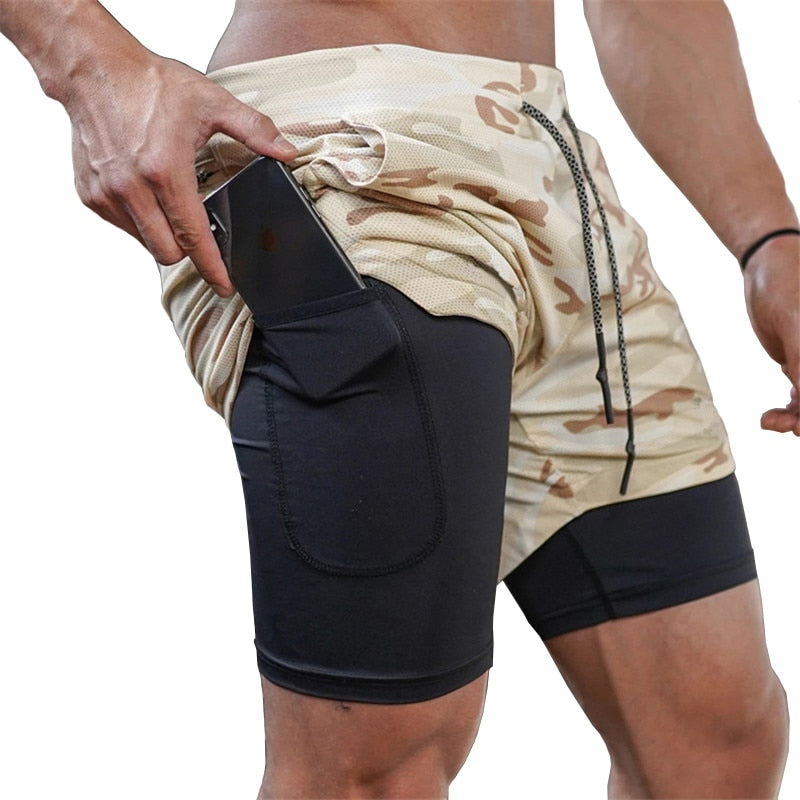 The 2 IN 1 Men Sport Shorts are designed for all seasons - Spring, Summer, Autumn, and Winter. They feature a stylish camouflage pattern that adds a trendy touch to your workout attire. Whether you're running, jogging, doing fitness exercises, or weight-lifting, these shorts are suitable for various sports activities.