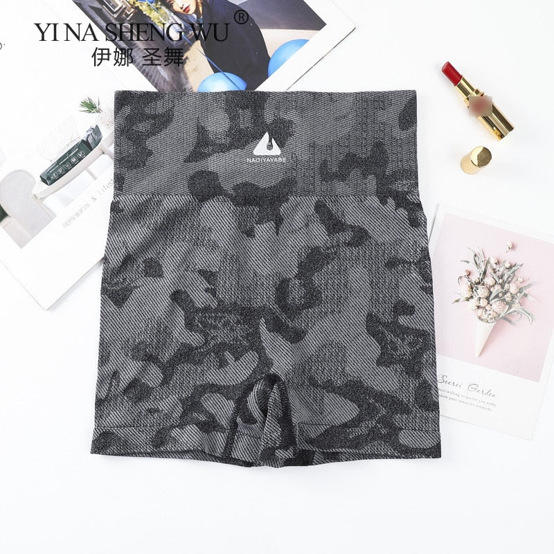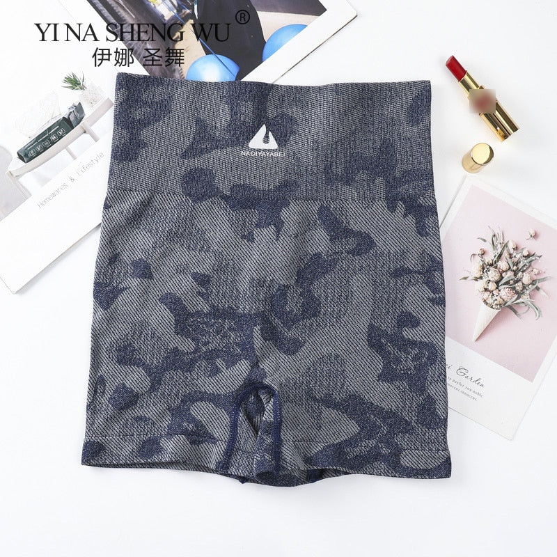 High Waist Workout Camouflage Shorts Seamless Fitness Yoga Short Scrunch Butt Yoga Sport Shorts Women Gym Legging Sportswear New