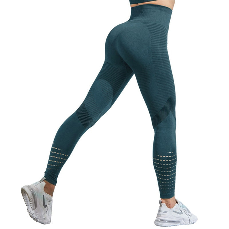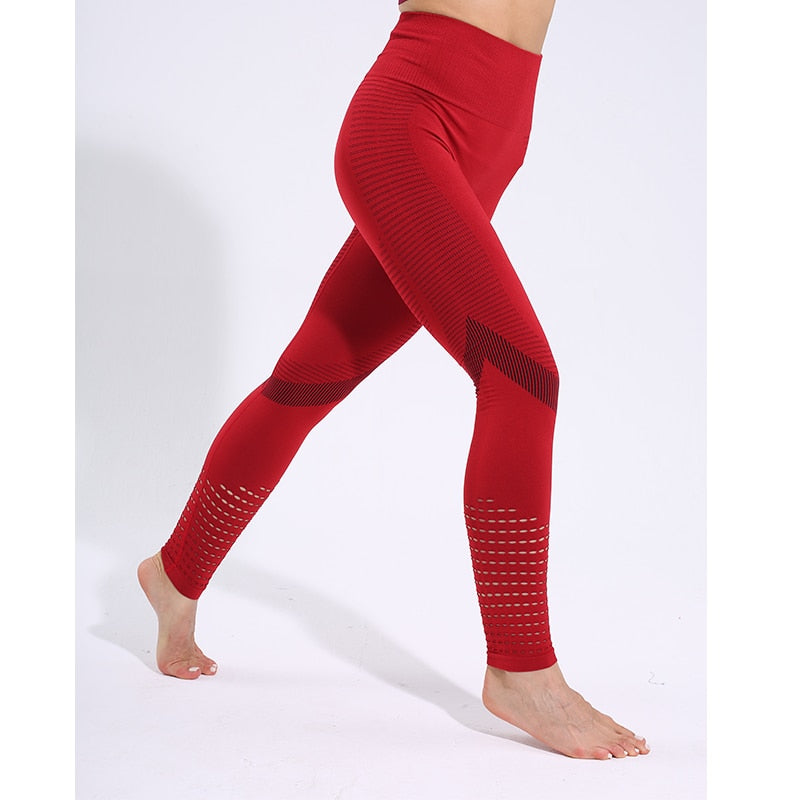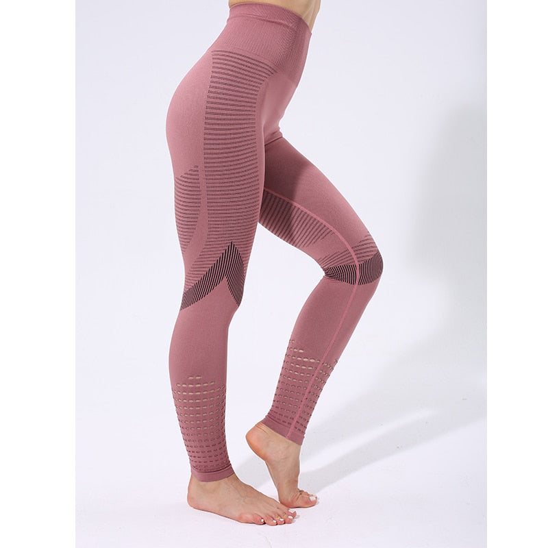 Hollow Yoga Leggings Women High Waist Push Up Sport Pants Breathable Stripe Seamless Legging Fitness Gym Leggings