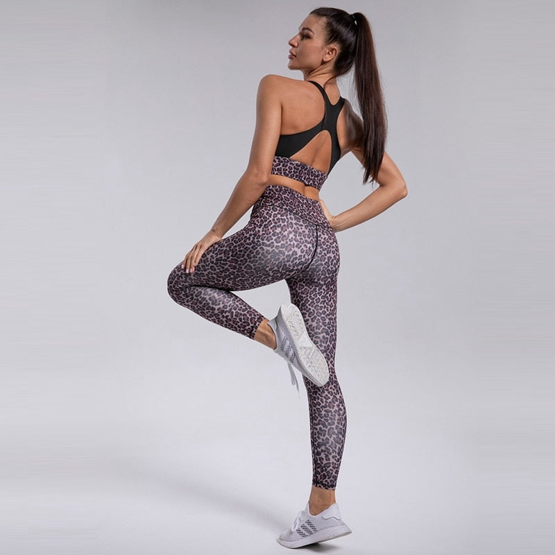 Leopard Yoga Suit for Fitness Women Sportwear Workout Clothes for Women Gym Clothing Sport Outfit Woman Two Piece Set Sexy