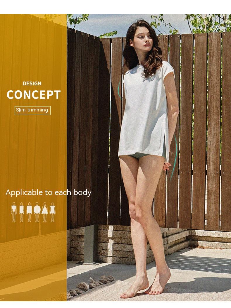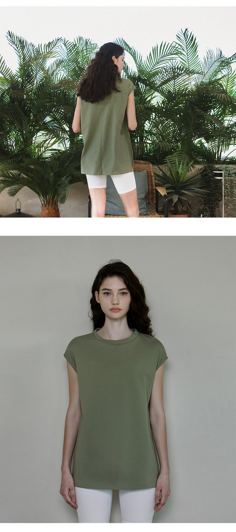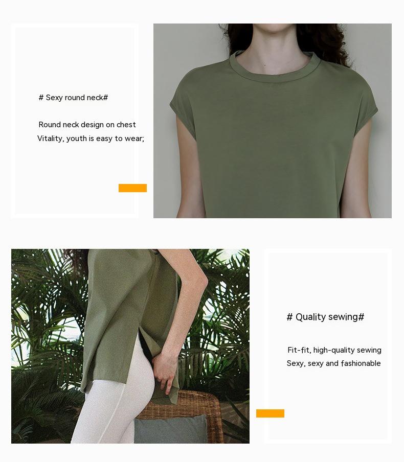 Long Thigh-length Fitness Vest Crew Neck Split Loose Running Athletic Clothing Yoga Clothes T-shirt