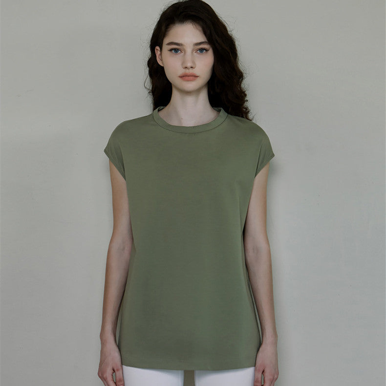Upgrade your fitness wardrobe with our Long Thigh-length Fitness Vest Crew Neck Split Loose Running Athletic Clothing Yoga Clothes T-shirt. Available in solid colors - white, black, and dark green, this T-shirt is perfect for yoga girls who value both style and comfort.