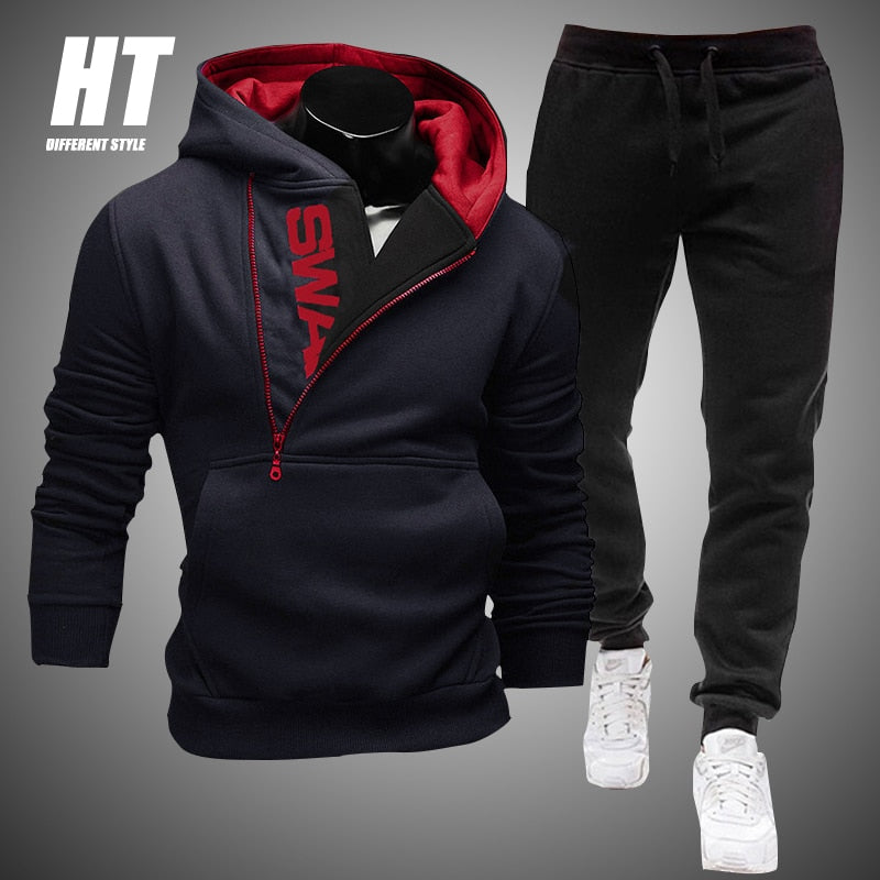 Men Tracksuit Casual 2 Pieces Set Zipper Sweatshirt and Sweatpants Print Sportswear Mens Clothes Solid Jogger Sport Suit