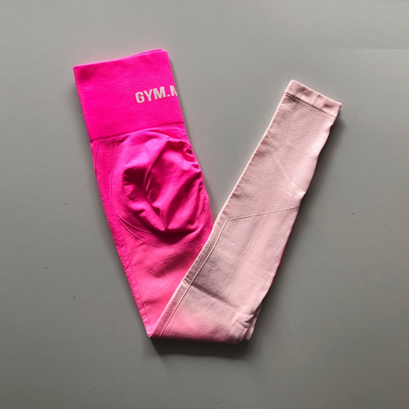 Introducing our latest addition to our women's activewear collection - the new ombre seamless leggings! These high waist yoga pants are not only functional but also fashionable with their sexy booty legging design and scrunch butt feature. Perfect for any fitness activity, these sports tights are made with spandex and nylon material for maximum comfort and flexibility. Available in sizes S, M, L, and various colors including pink, grey, blue, and black. Our custom logo, drop shipping, and wholesale services are also available for your convenience. Please note that these leggings fit smaller than usual, so please check our sizing info before purchasing. Upgrade your workout wardrobe with these ankle-length pants and experience the perfect blend of style and performance. Shop now and achieve your fitness goals in style with our new ombre seamless leggings!