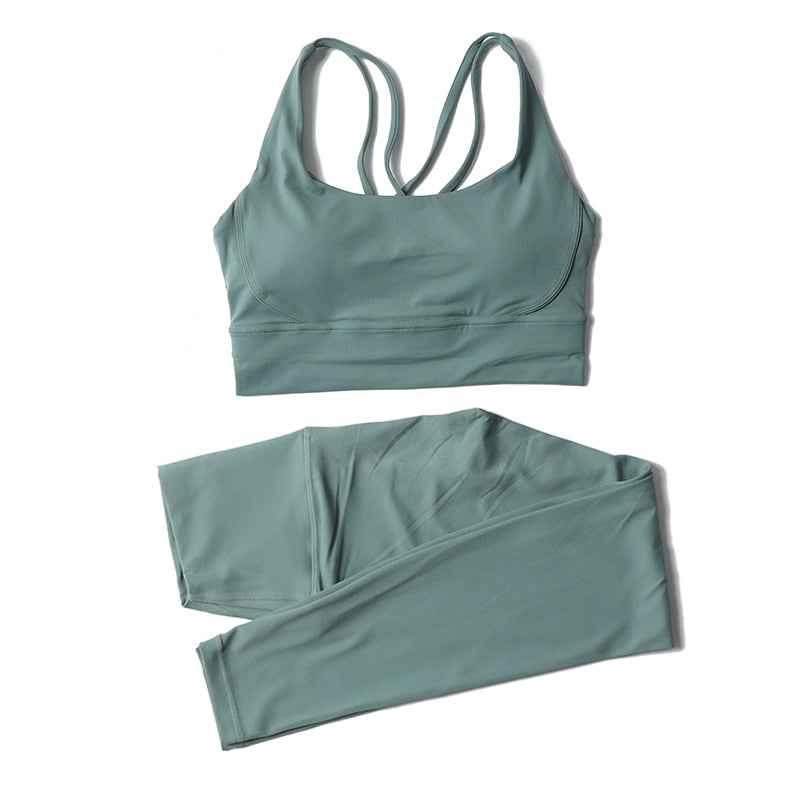 New Yoga Set Women's Tracksuit Gym Fitness Set Woman 2 Pieces Leggings Sports Bra Breathable Sportwear Woman Clothes