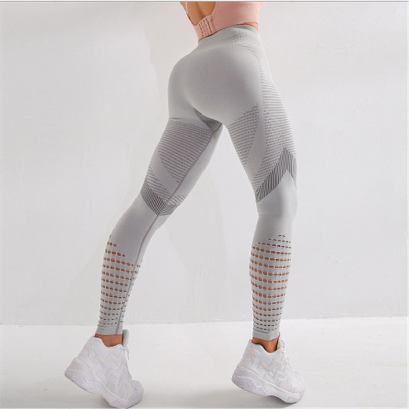 NICERES Seamless Gym Leggings High Waist Hollow Out Sexy Push Up Running Tight Yoga Leggings Sport Pants Women Fitness