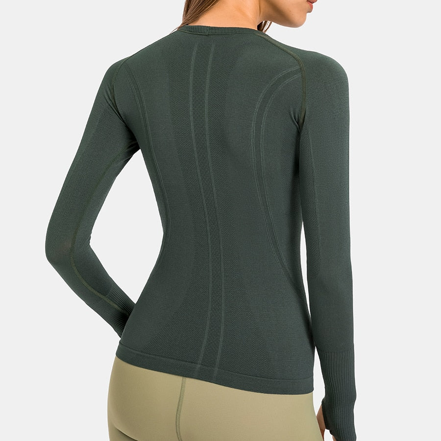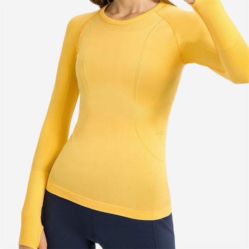 Introducing the Women Yoga Seamless Top, a super soft and comfortable long sleeve shirt perfect for your workouts. Made from a blend of nylon, spandex, and polyester, this top is not only soft to the touch but also stretchy, allowing for maximum flexibility during your yoga sessions.