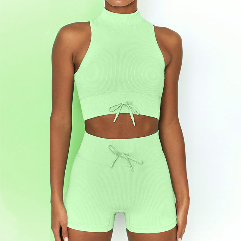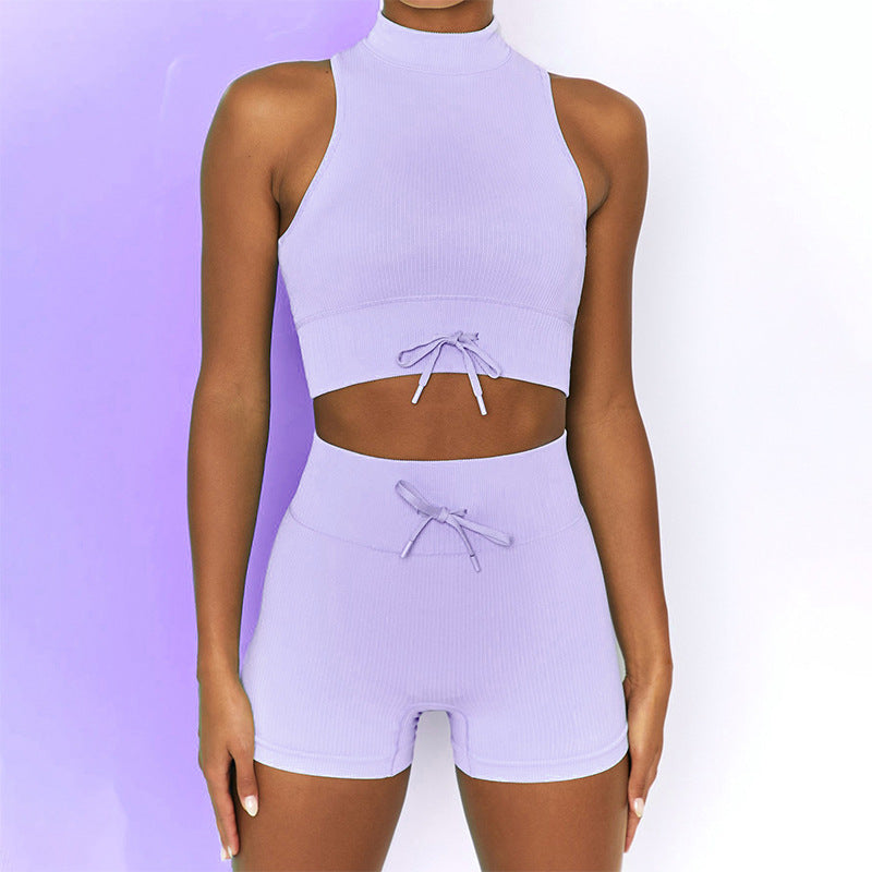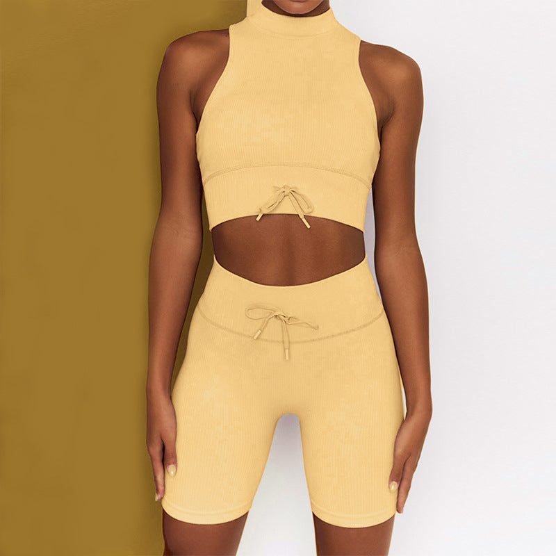 Pure Color Fitness High-neck Tank Top Hip Shorts Yoga Clothing Suit