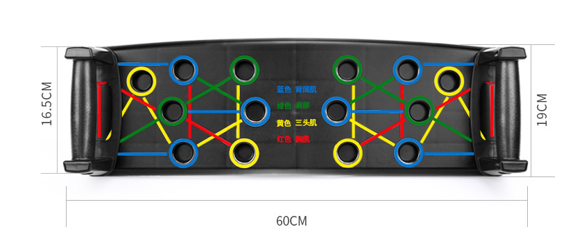 This 14-in-1 push-up board is an innovative color-coded push-up board training system that can train muscle groups-hands, chest, abdomen, hips, shoulders, back and triceps.