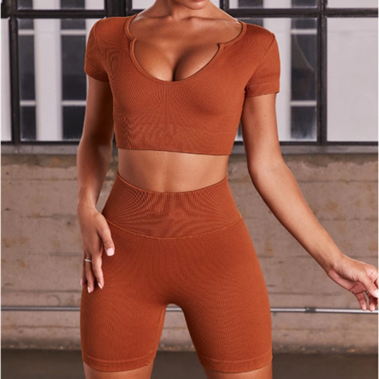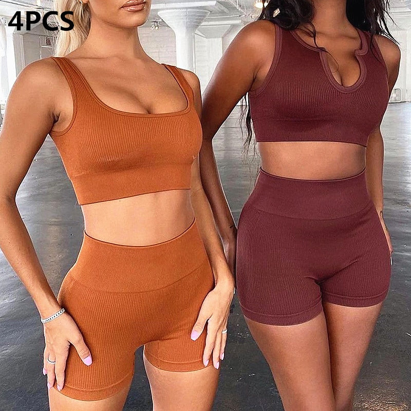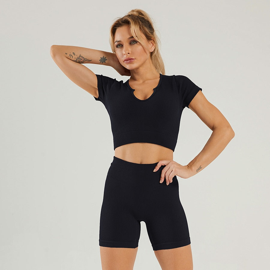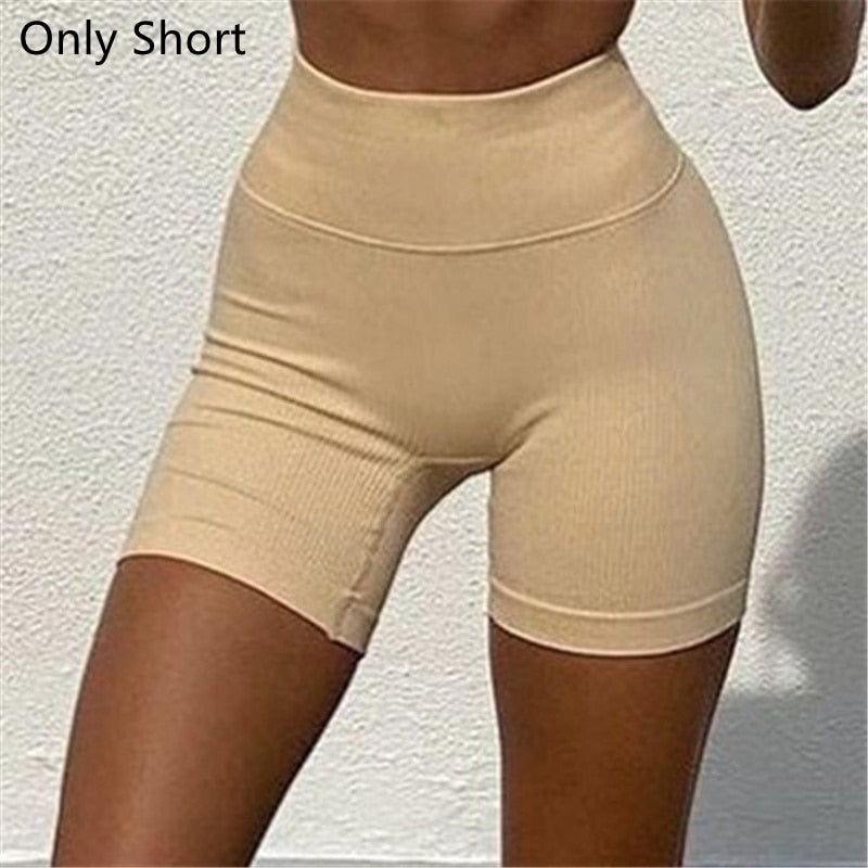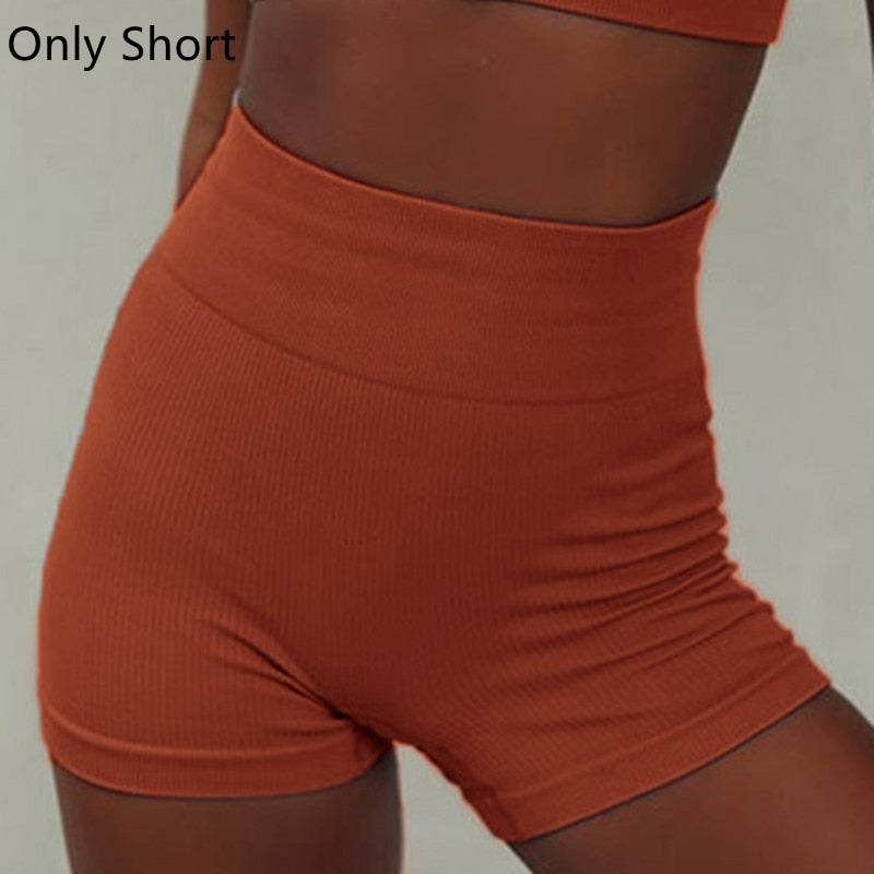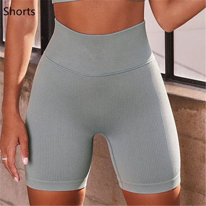 Ribbing Seamless Sport Set Women Two Piece Crop Top Bra Shorts Workout Outfit Fitness Wear GymSuit Female Yoga Sets Clothes