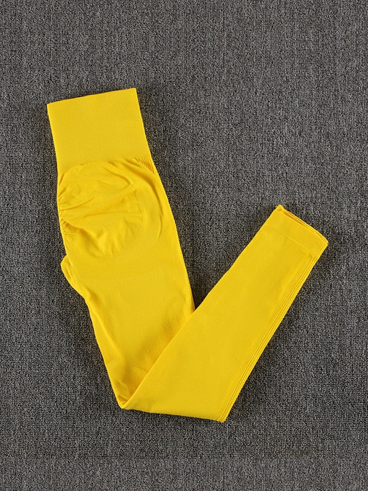 Made from a high-quality blend of spandex and polyester, these leggings have a stretchy and form-fitting design that not only flatters your figure but also accentuates your curves. The waist is designed to sit high, providing you with maximum coverage and support. The seamless construction of these leggings ensures a smooth and comfortable fit, allowing you to move freely without any restrictions.
