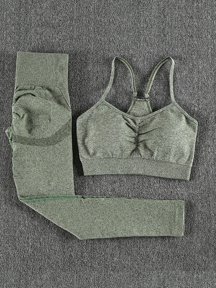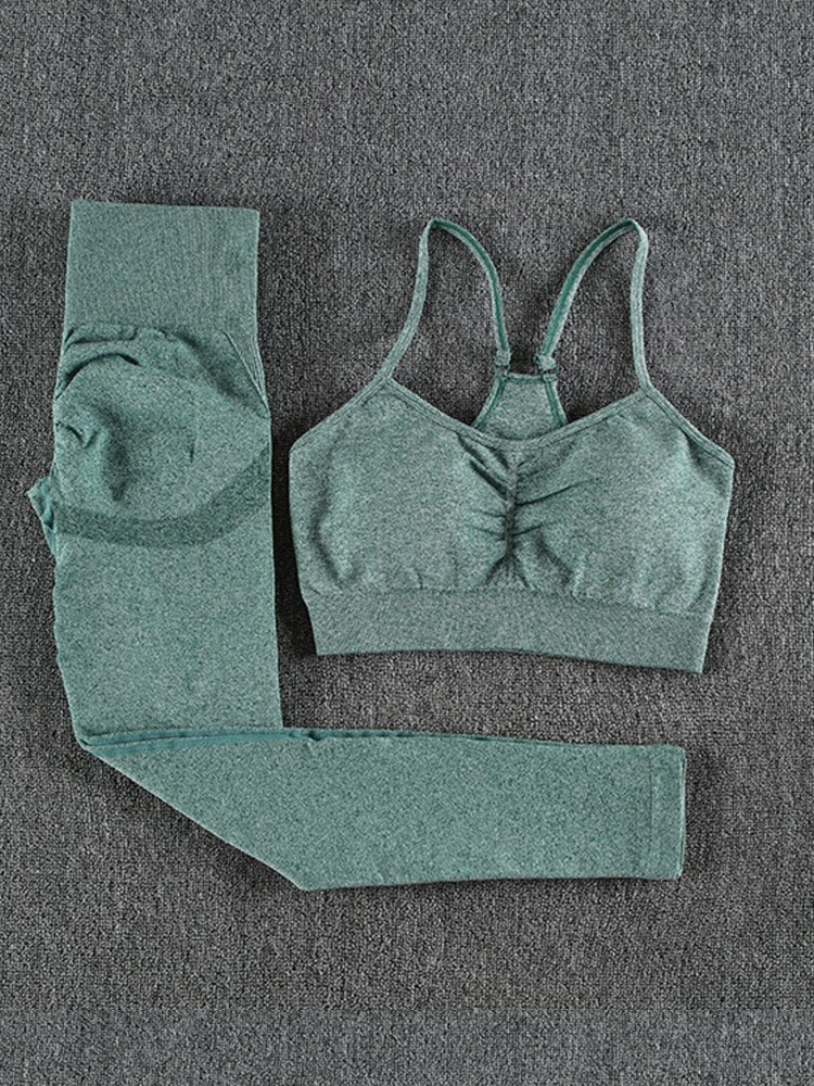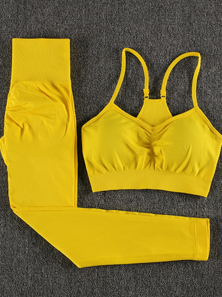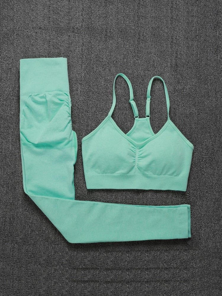 Seamless Booty Leggings Women Gym Two Piece Set Workout Activewear Athletic Sports Pants Push Up Fitness Stretchy
