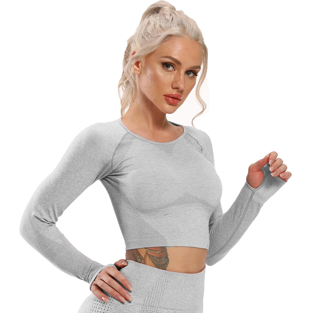 This Seamless Gym Crop Top Women Sports Top is the perfect addition to your workout wardrobe. Designed with comfort and style in mind, this top is made from a blend of nylon and spandex, offering a breathable, quick-drying, and anti-wrinkle fabric that will keep you feeling comfortable and confident during your yoga or fitness routine. The dotted hollow-out raglan design adds a touch of style to this activewear, making it perfect for both gym and outdoor workouts. Available in multiple sizes, this gym clothing for women fits true to size, allowing you to choose the perfect fit for you. Whether you're hitting the gym or going for a run, this Women Sports Top is the perfect choice for any active woman. Shop now and experience the comfort and style of this top for fitness, sports top women gym, sports shirts women, and women's activewear.