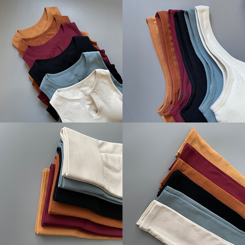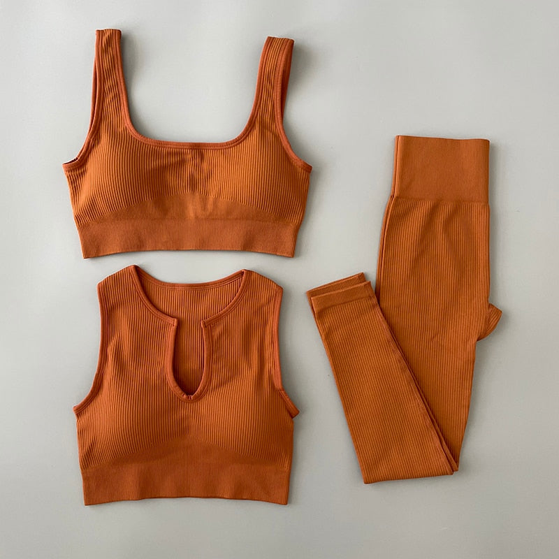 Introducing our Seamless Yoga Clothing Set, the perfect workout sportswear for any gym enthusiast. Our high waist leggings and crop top are made from a premium quality knitted material that is designed to fit comfortably and snugly on your body. Available in sizes S, M, and L, our seamless yoga clothing set is perfect for women who want to look stylish and feel comfortable while working out. Our solid patterned set comes in a range of colors, including orange yellow, black, wine red, cream, brown, and blue, so you can choose the one that best suits your style. Made from breathable nylon material, our seamless yoga clothing set is perfect for those intense yoga sessions where you need to feel comfortable and cool. The sleeveless design of our crop top ensures that you have the freedom to move your arms and shoulders without any restrictions. Our seamless yoga clothing set is easy to wear and is perfect for any yoga enthusiast who wants to look their best while working out. Order your 2/3Pcs Seamless Yoga Clothing Set today and experience the ultimate workout experience.