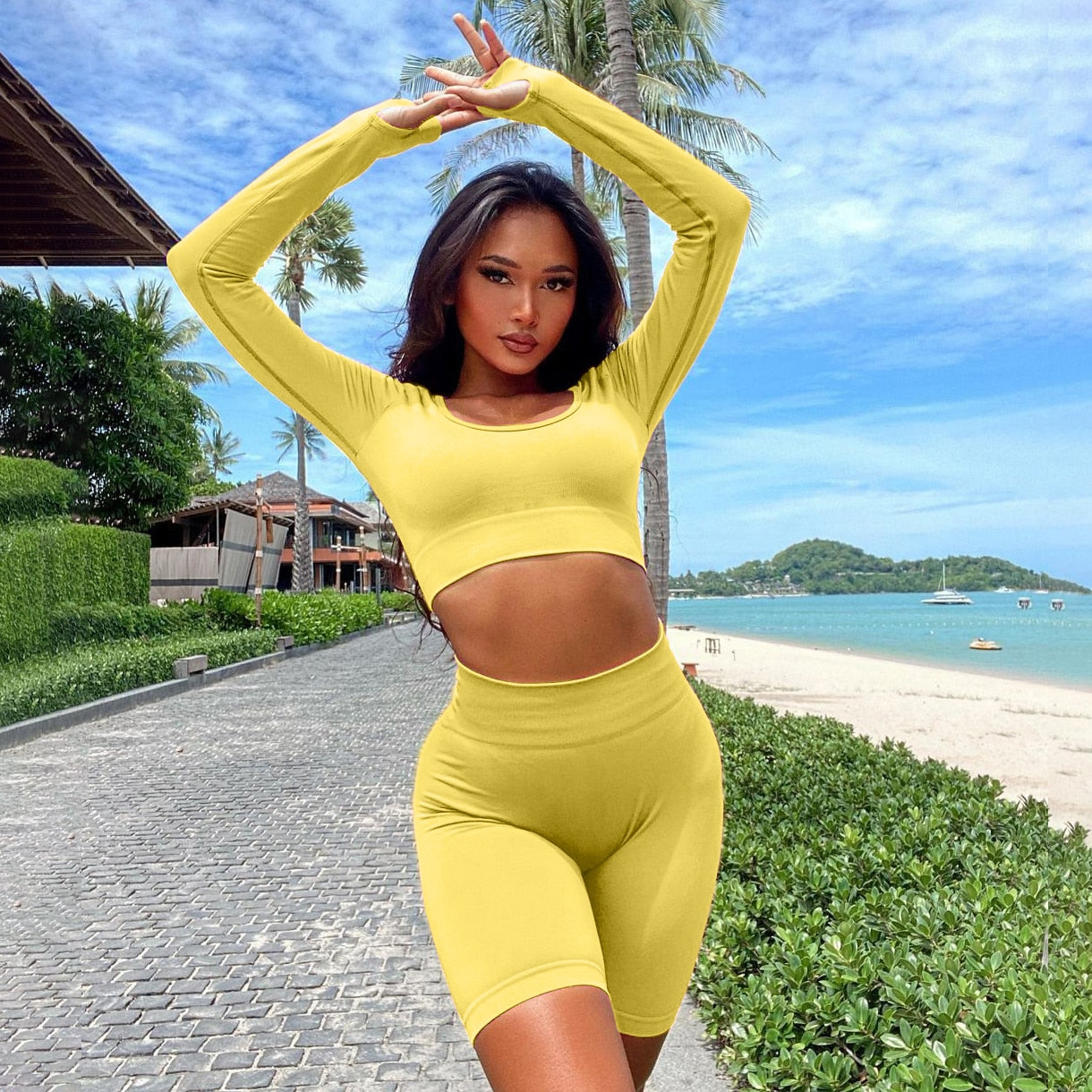 Looking for the perfect yoga set to wear during your workouts? Look no further than our Seamless Yoga Set! Made with high-quality nylon material, this set is breathable and quick-drying, making it perfect for even the most intense workouts. The high waist design provides extra support and coverage, while the solid pattern ensures that you look stylish and put-together. This set is suitable for all seasons, so you can wear it year-round. Whether you're running, hiking, camping, cycling, or hitting the gym, this activewear set is the perfect choice. So why wait? Order yours today and experience the ultimate in comfort and style!