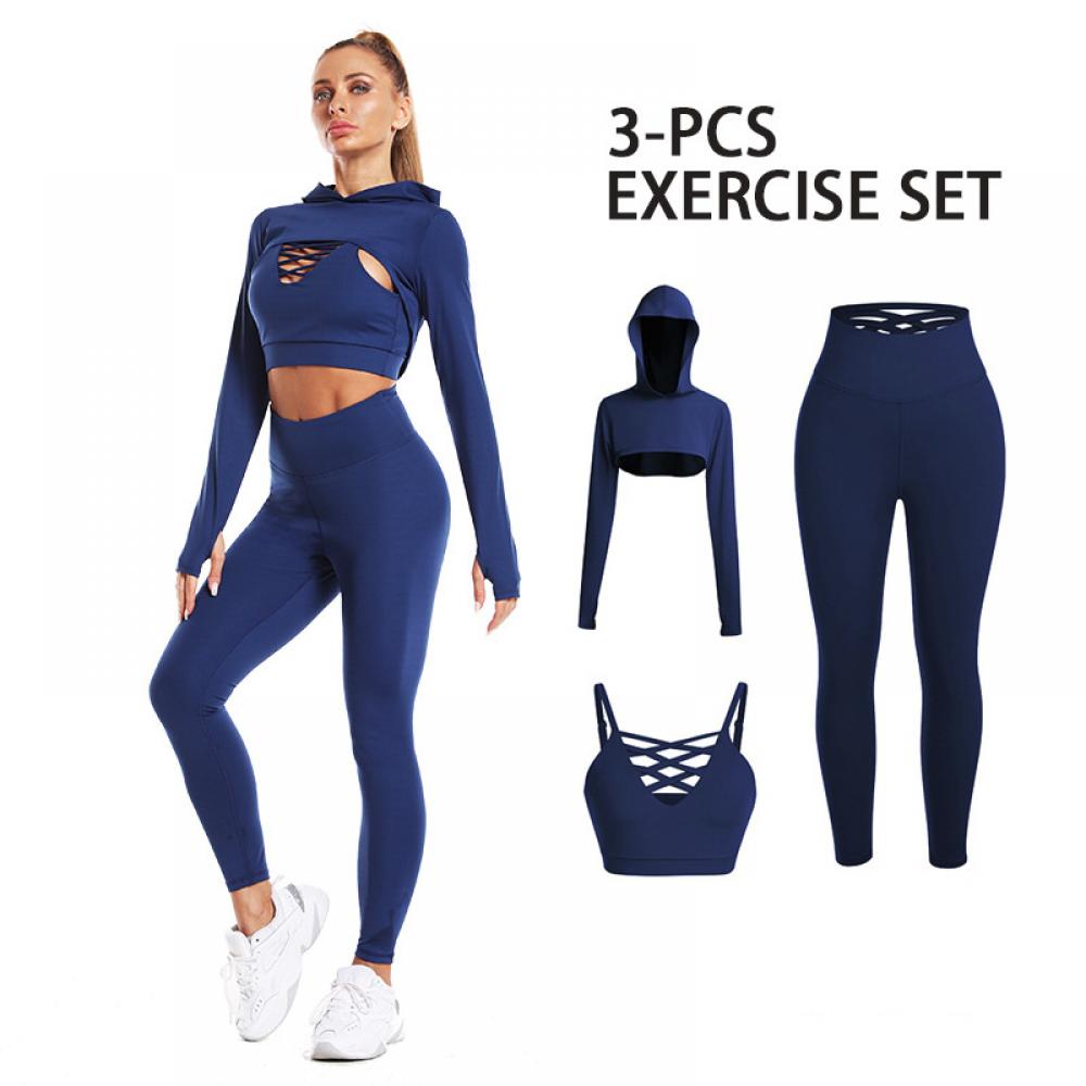 With anti-pilling, anti-shrink, and anti-wrinkle properties, this set is perfect for high-intensity workouts and will last you a long time. Available in sizes S/M/L/XL and in blue, black, and gray, this set is perfect for any fitness enthusiast.