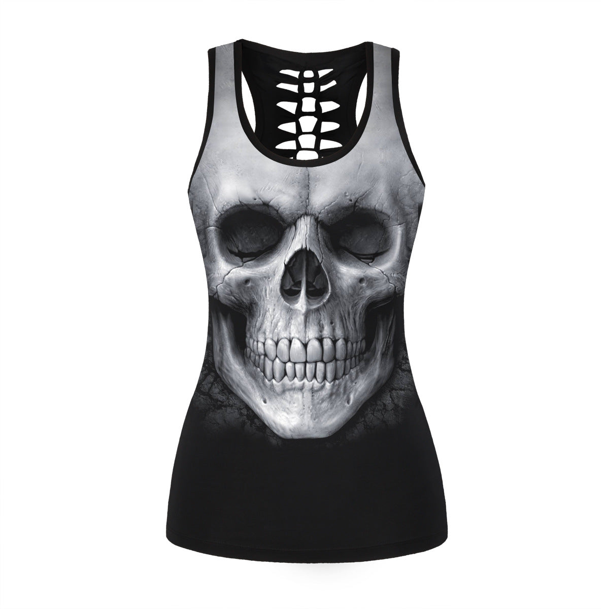 Shantou digital printing beauty back vest Halloween tide brand female fitness clothing hollowing bottoming shirt