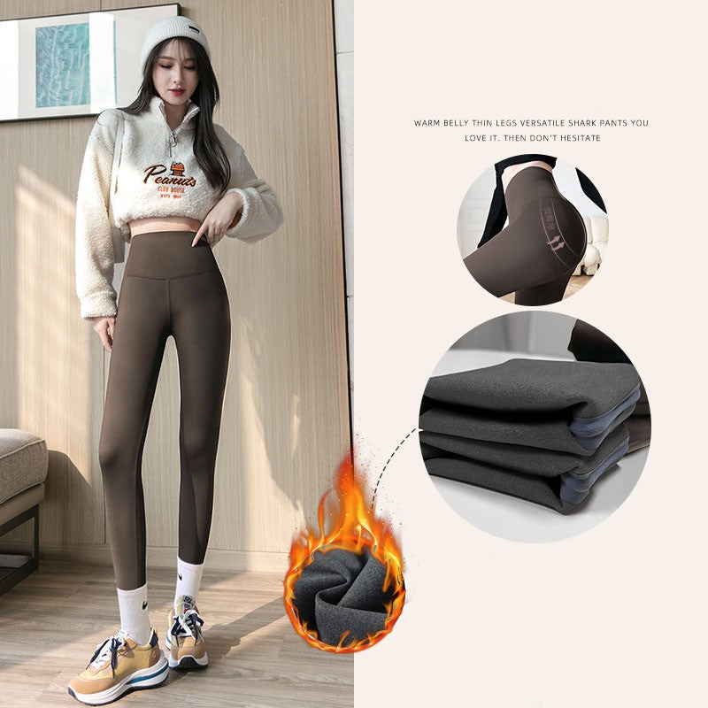 Shark Pants Tight Height Waist Abdominal Lifting Buttock Pants Black Outer Wear Yoga Plus Velvet Leggings