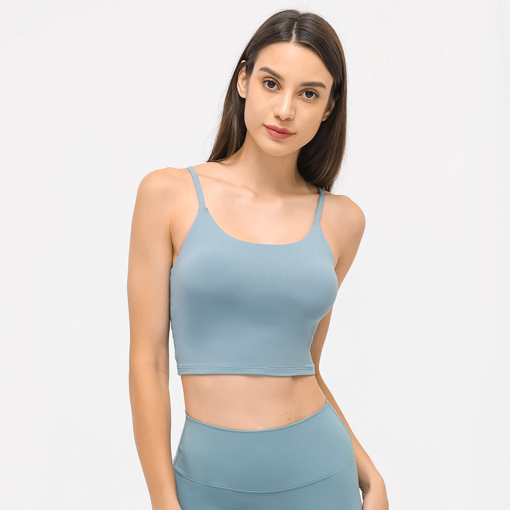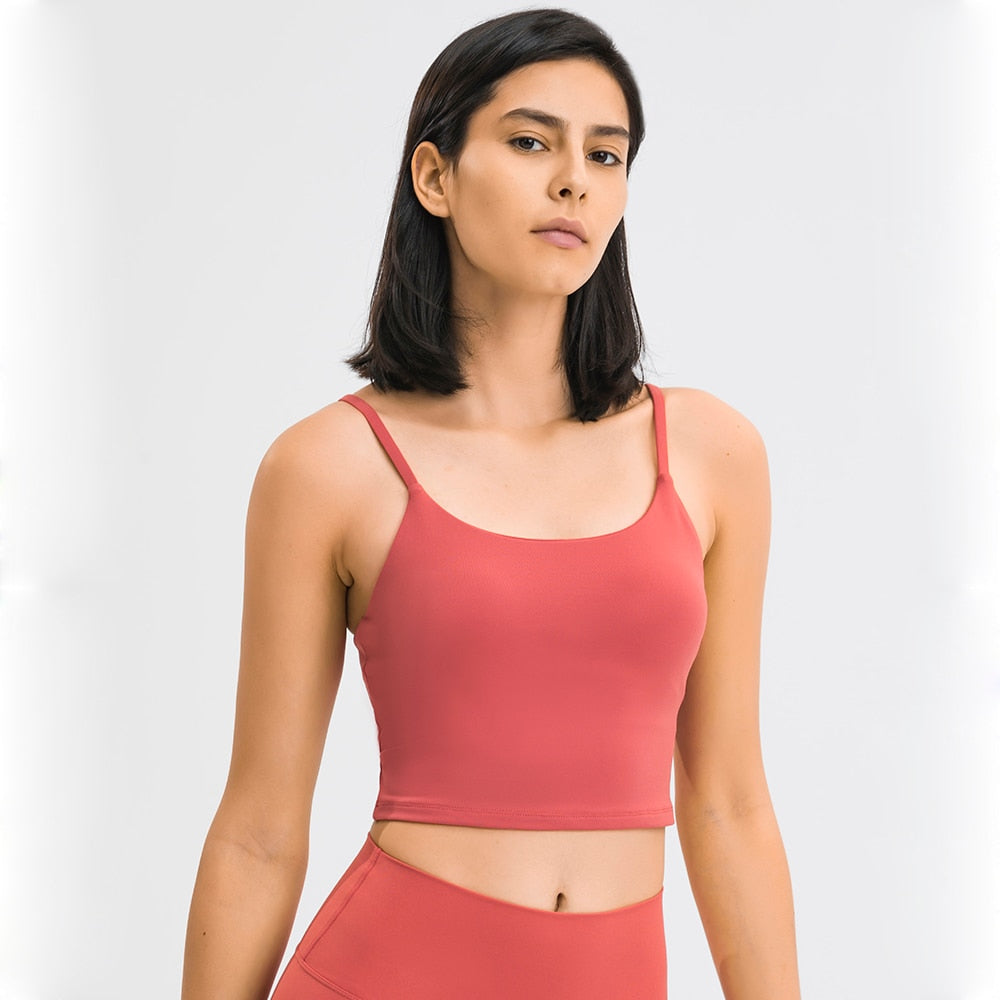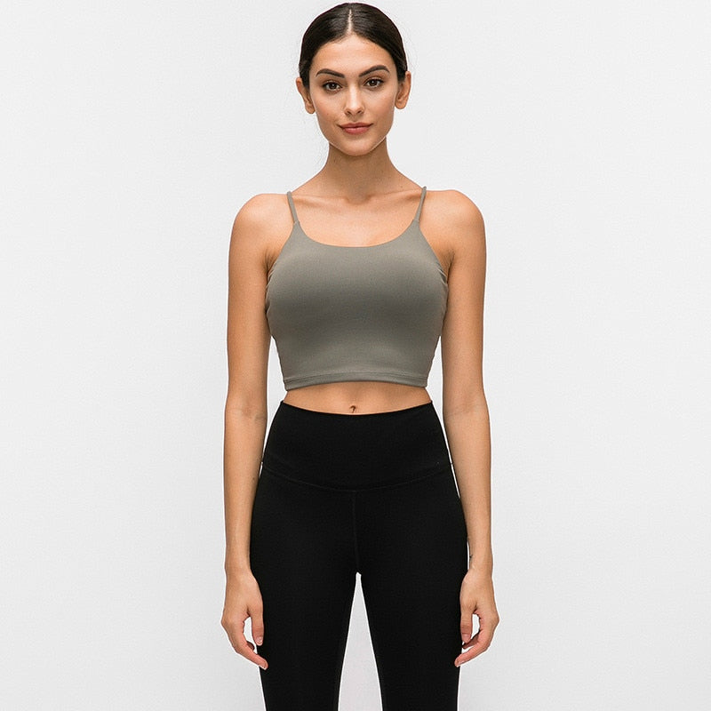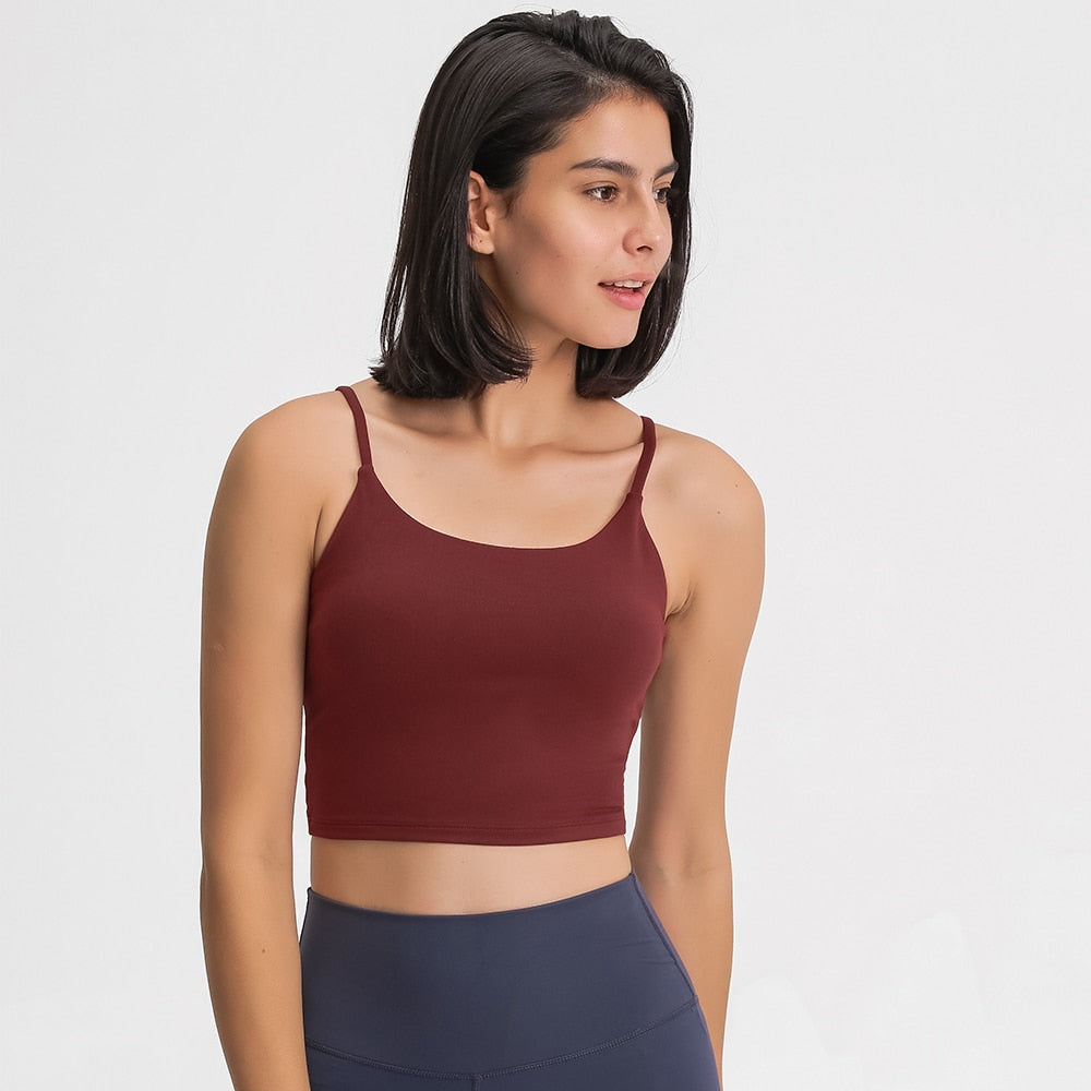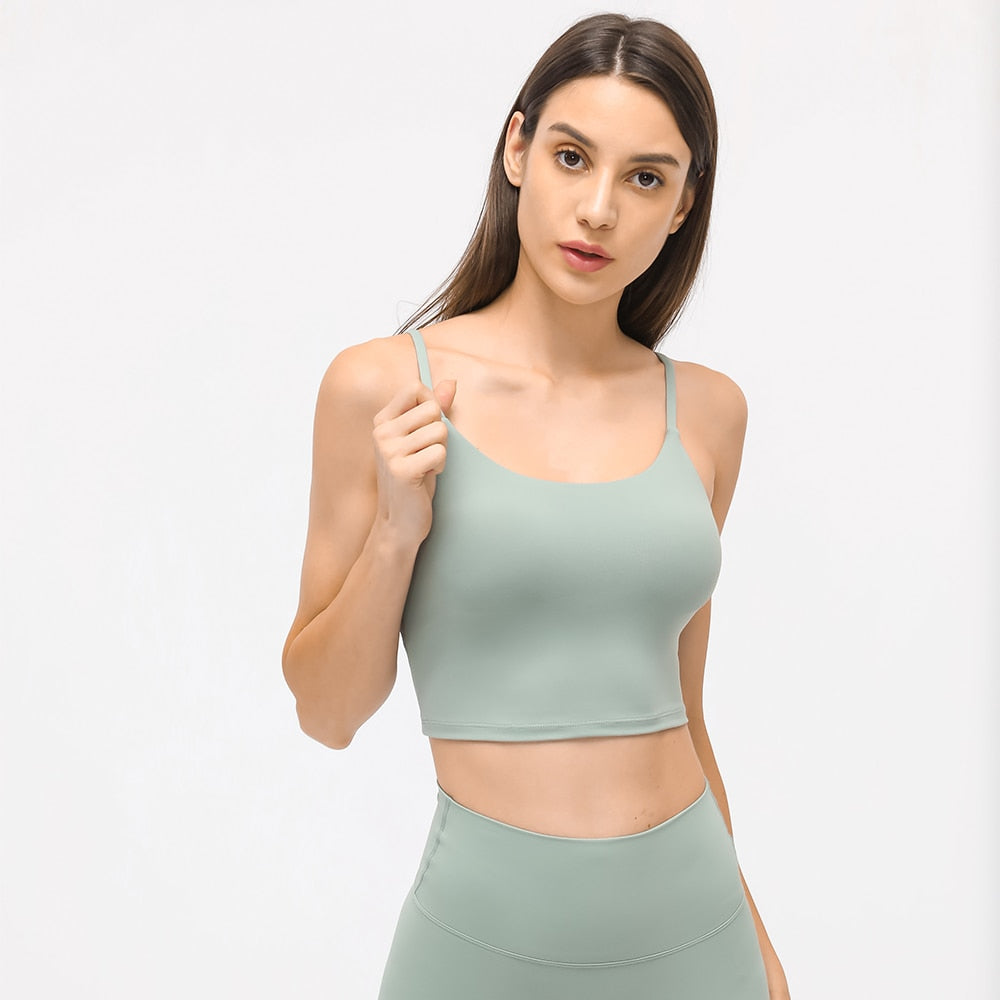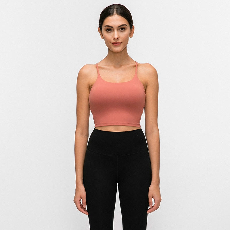 ESSENTIAL Push Up Padded Gym Fitness Bras Crop Tops Women Plain Soft Nylon Yoga Workout Sports Bras with Removable Pads