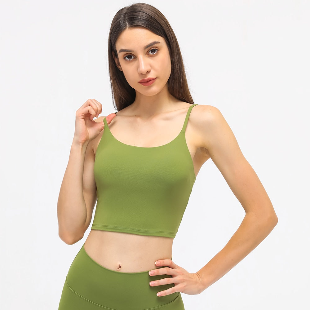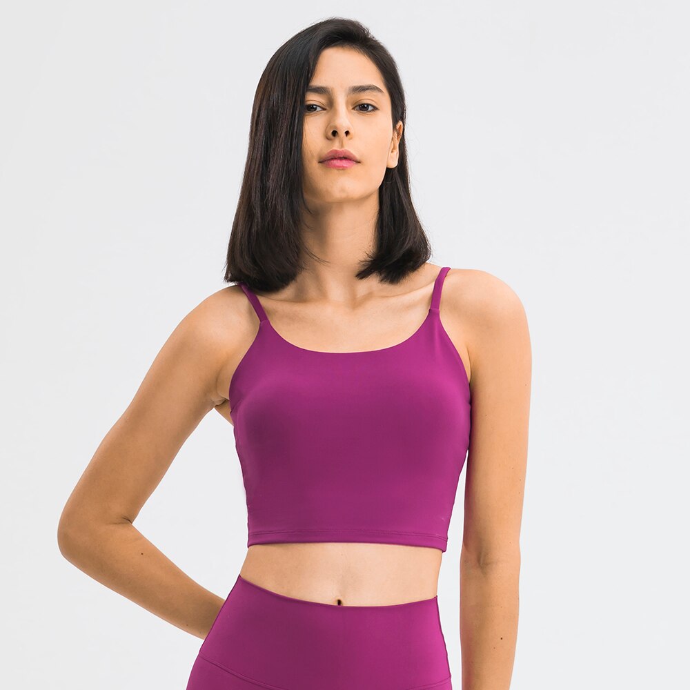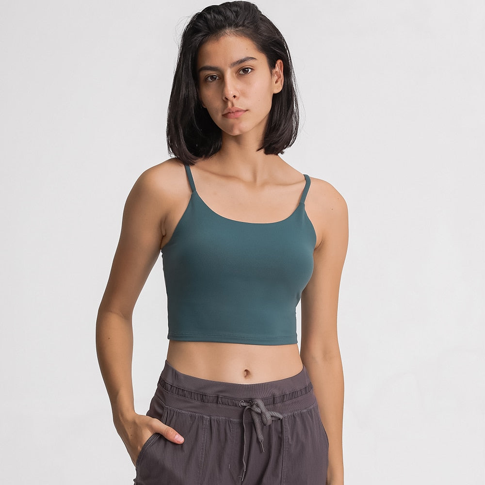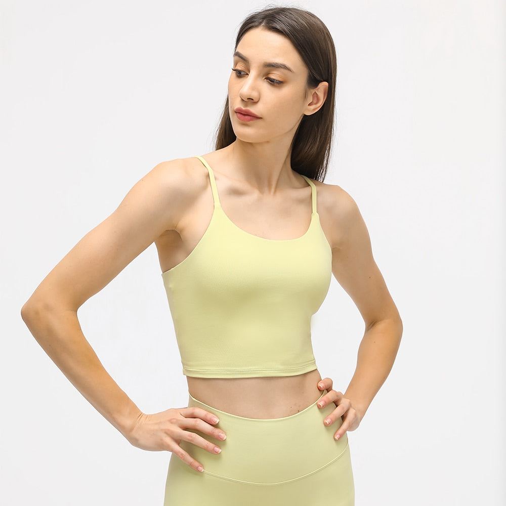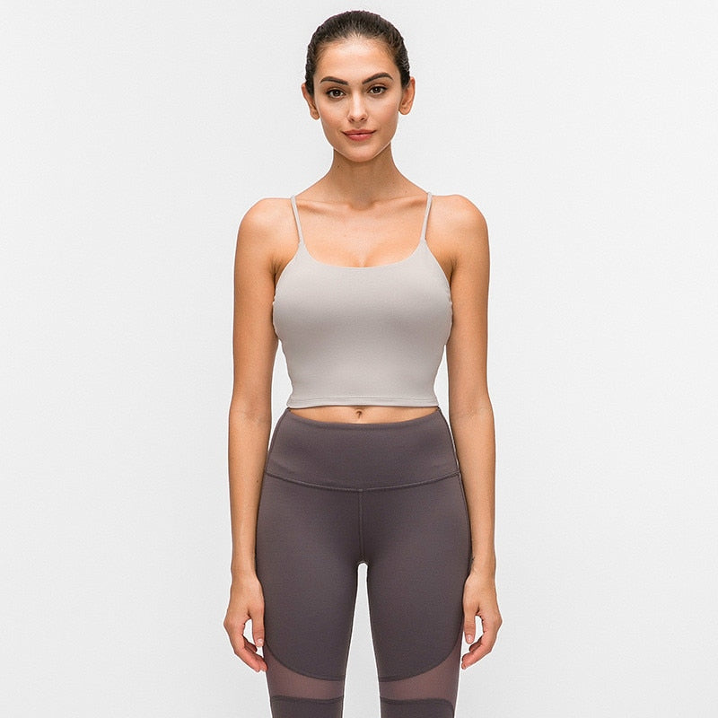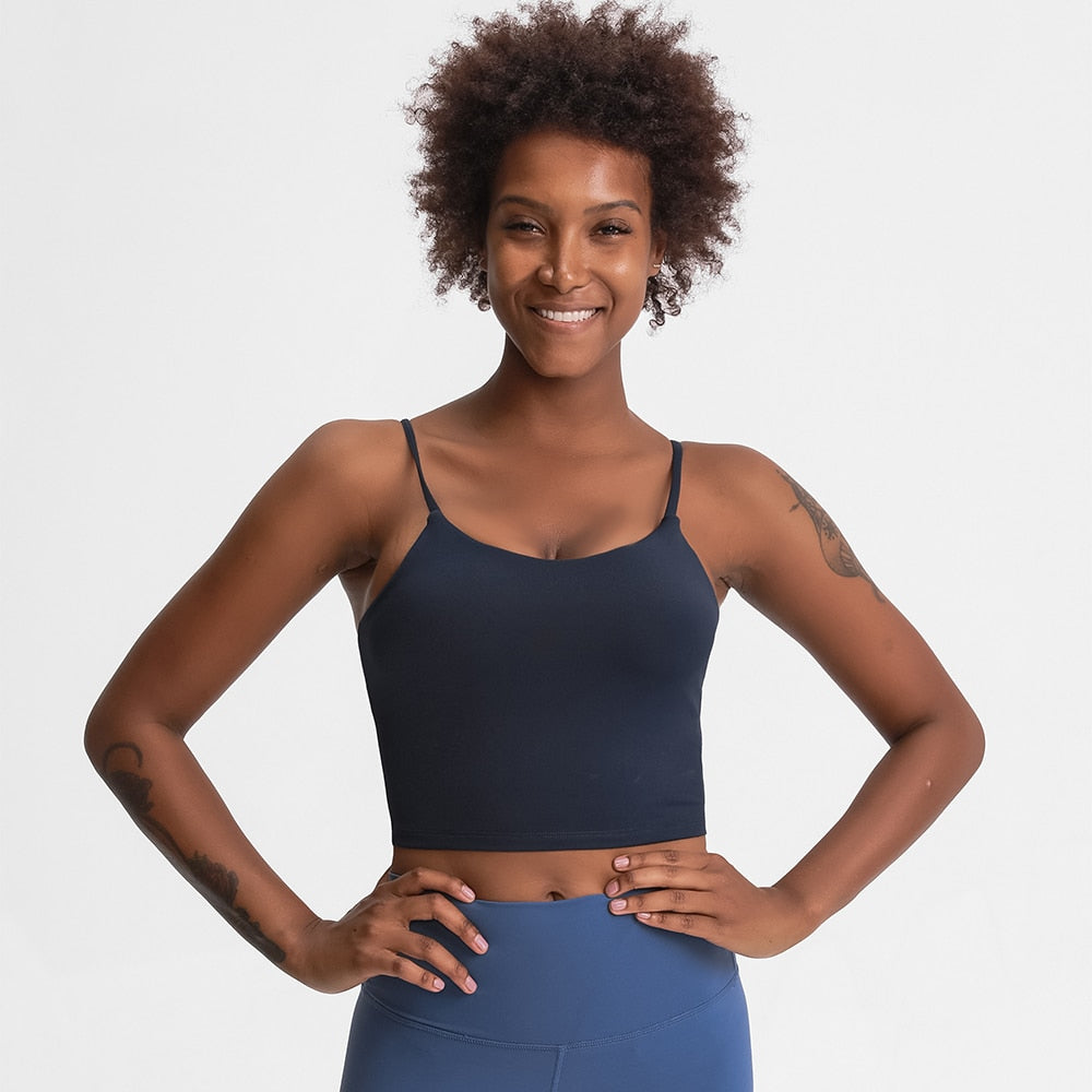 ESSENTIAL Push Up Padded Gym Fitness Bras Crop Tops Women Plain Soft Nylon Yoga Workout Sports Bras with Removable Pads