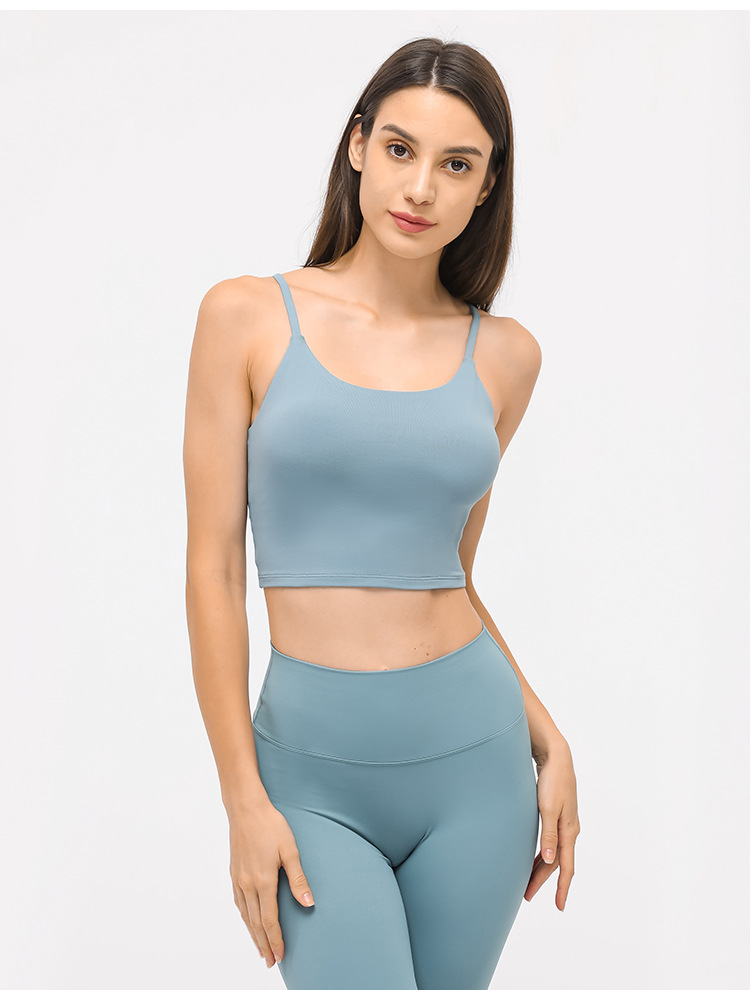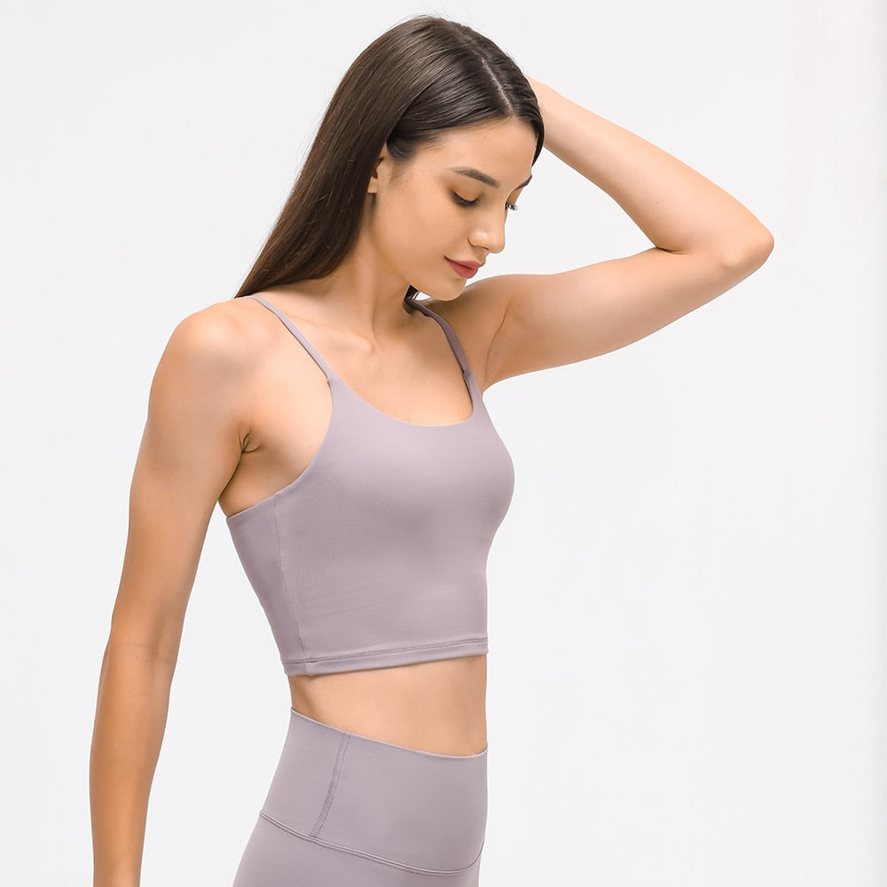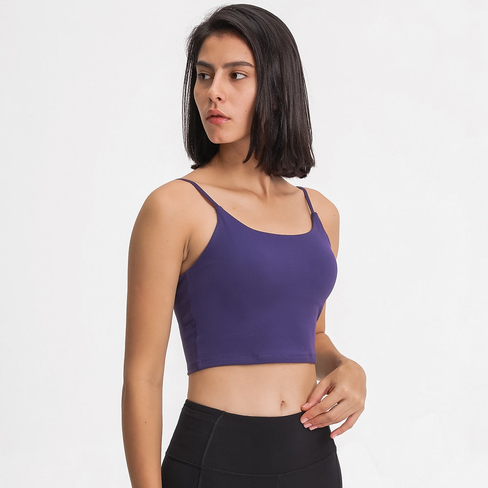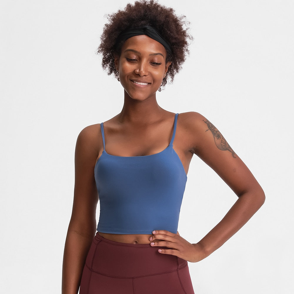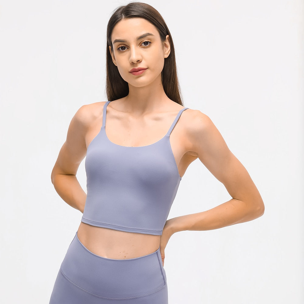 ESSENTIAL Push Up Padded Gym Fitness Bras Crop Tops Women Plain Soft Nylon Yoga Workout Sports Bras with Removable Pads