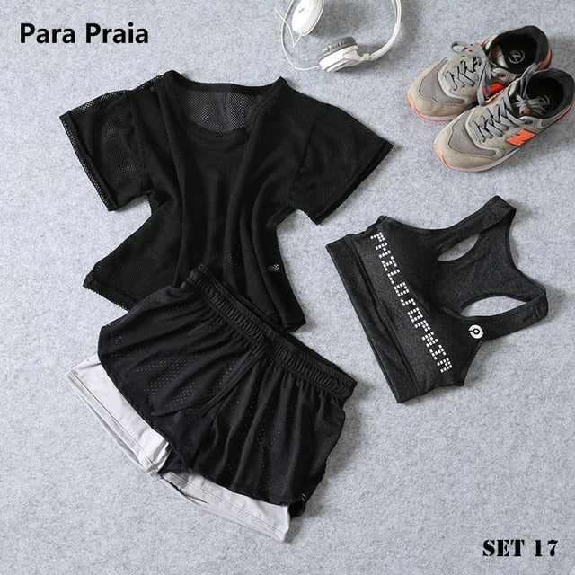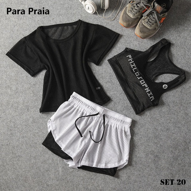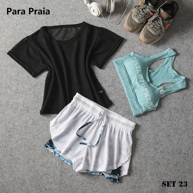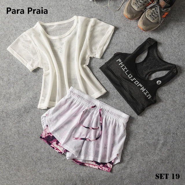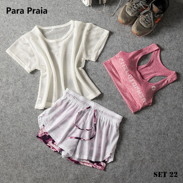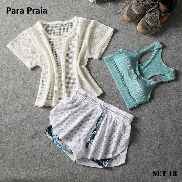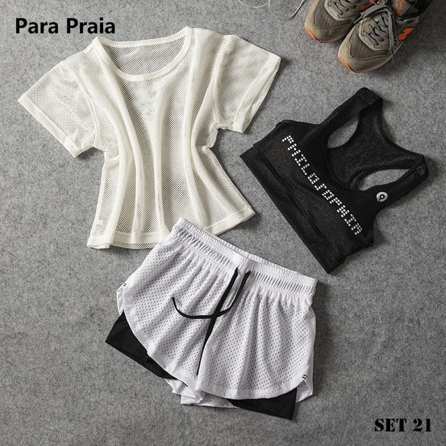 Sport Wear Three Piece Yoga Set Sport Shirt for Women Sports bra Fitness Flare Pants Leggings Tracksuit Gym Leggings 15 Colours