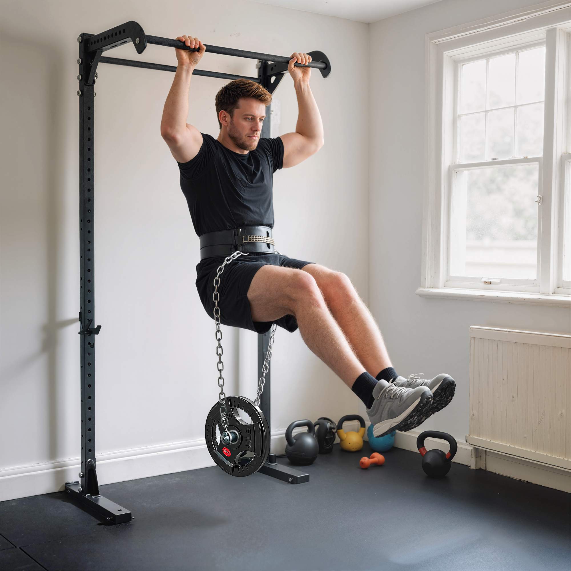 - Three grip holes extend bar-free workout options