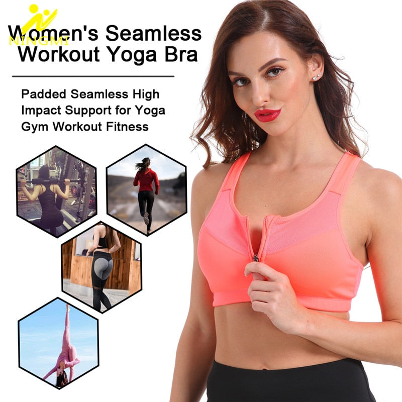 Sports Bra Hot Women Gym Fitness Zipper High Impact Vest Active Wear Underwear Push Up Running Yoga Bra Sport Crop Tops