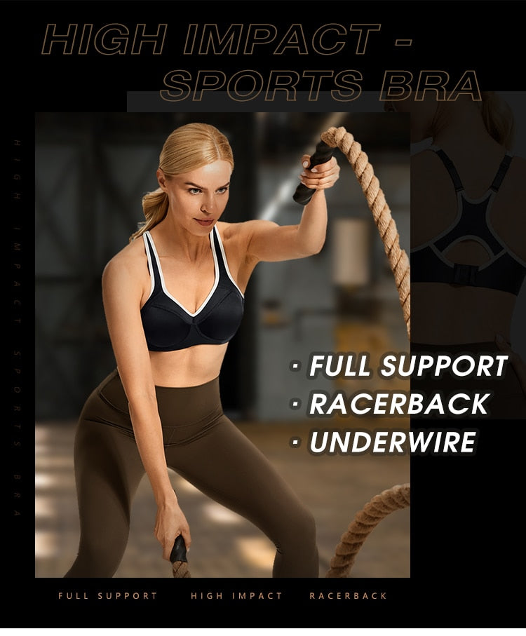 Sports Bra Women Polyamide Full Support High Impact Racerback Lightly Lined Underwire New Undrwear Bras Shockproof