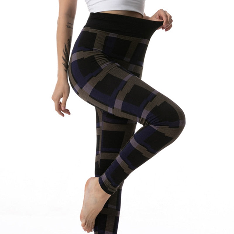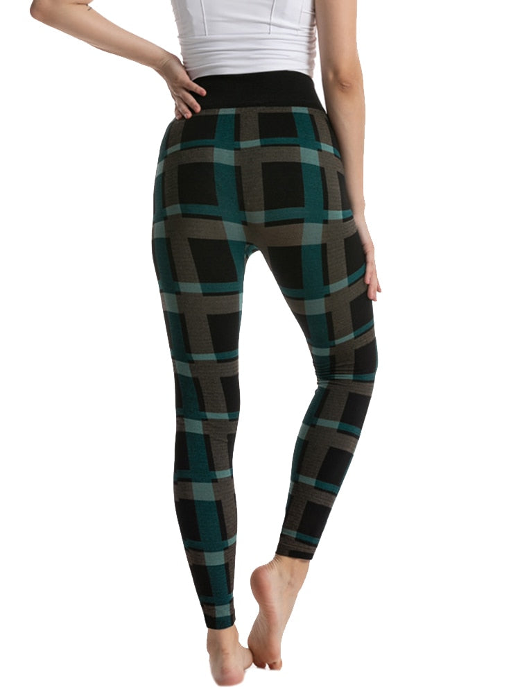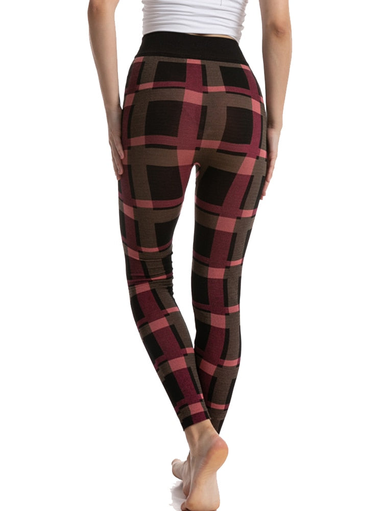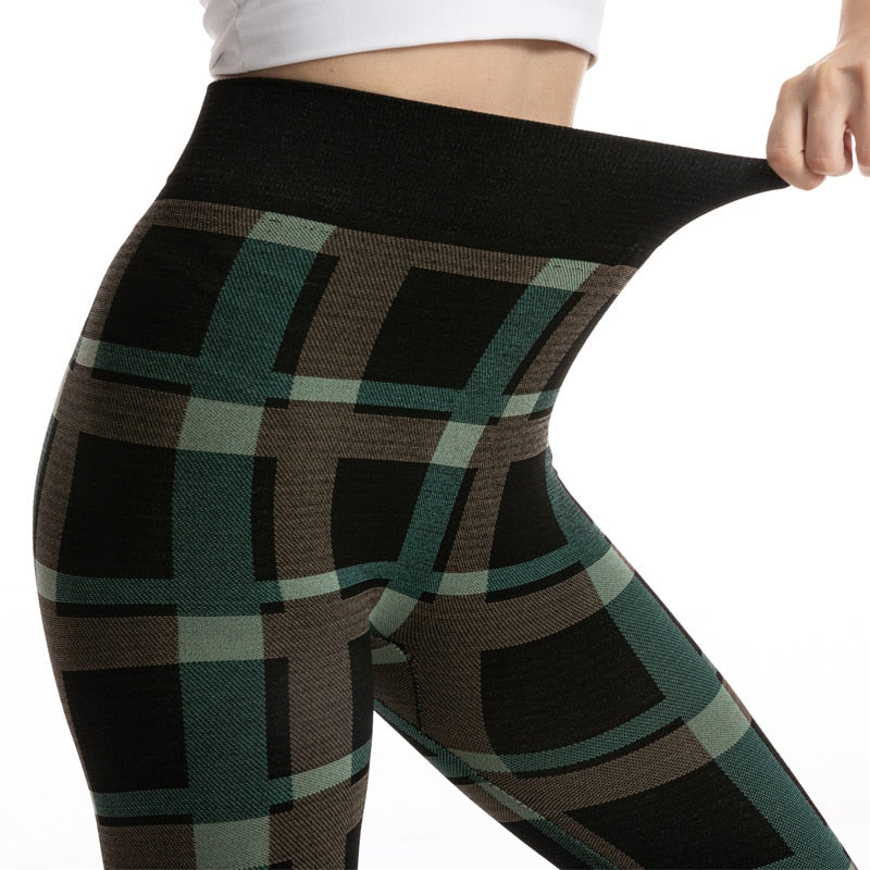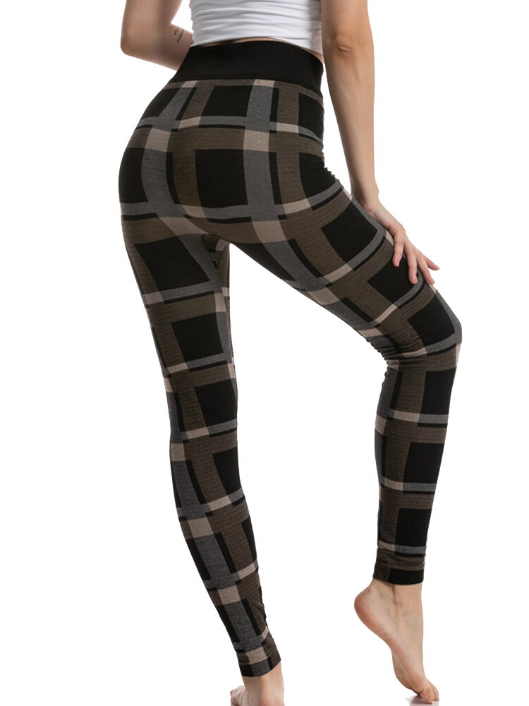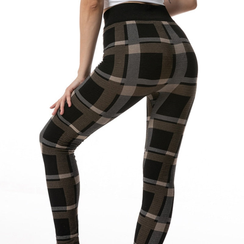 CHSDCSI Sports Pants Sexy Leggins High Waist Plaid Printed Women Leggings Workout Running Push Up Trousers Elastic Fitness Gym