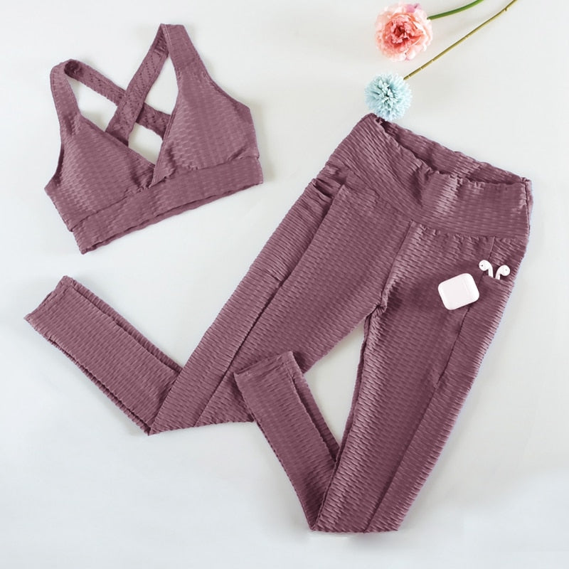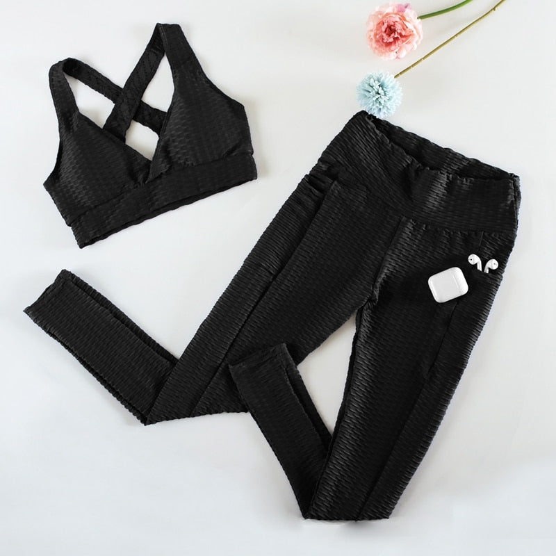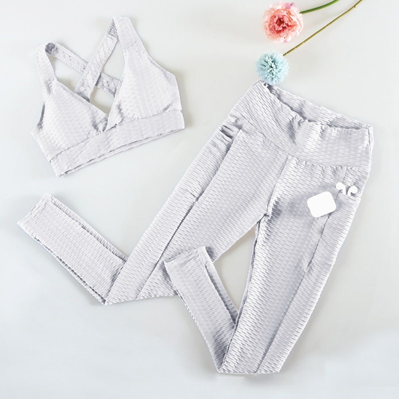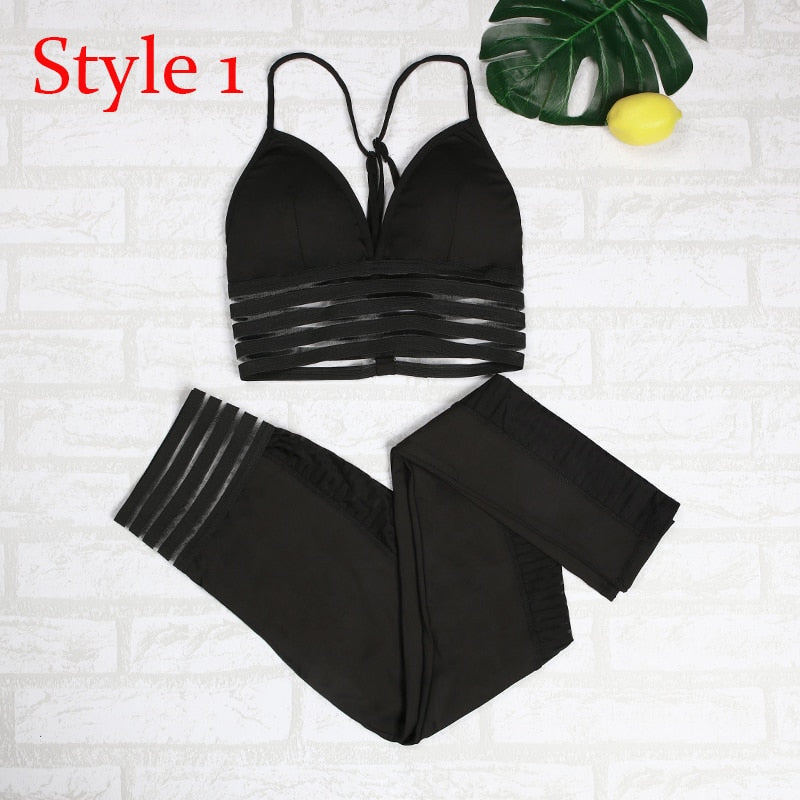 2 pieces Sports Suits Fitness Gym Set Leopard Print High Elastic Hip Sports Female Padded Push-up Bra Sport Set Women