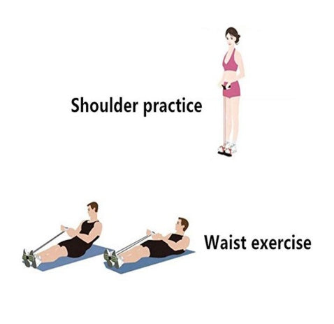 Arm and Waist Exercise Sit on a yoga mat with your legs bent and supported on the footrest. Holding the handle and pull the spring by hand.