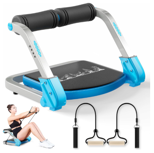 Colors: Multi-functional abdominal trainer—black and blue color scheme + resistance bands; multi-functional abdominal trainer—black and red color scheme + resistance bands