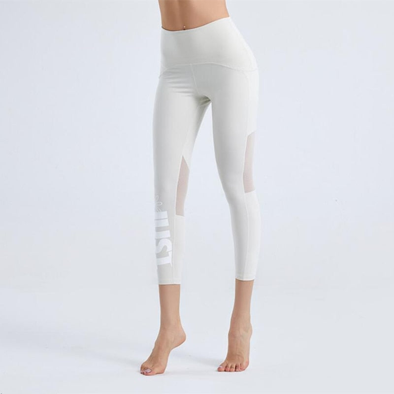 Featuring a unique mesh stitching and letter printing design, these leggings are not only fashionable but also perfect for activities such as Pilates, running, or any other fitness activity.