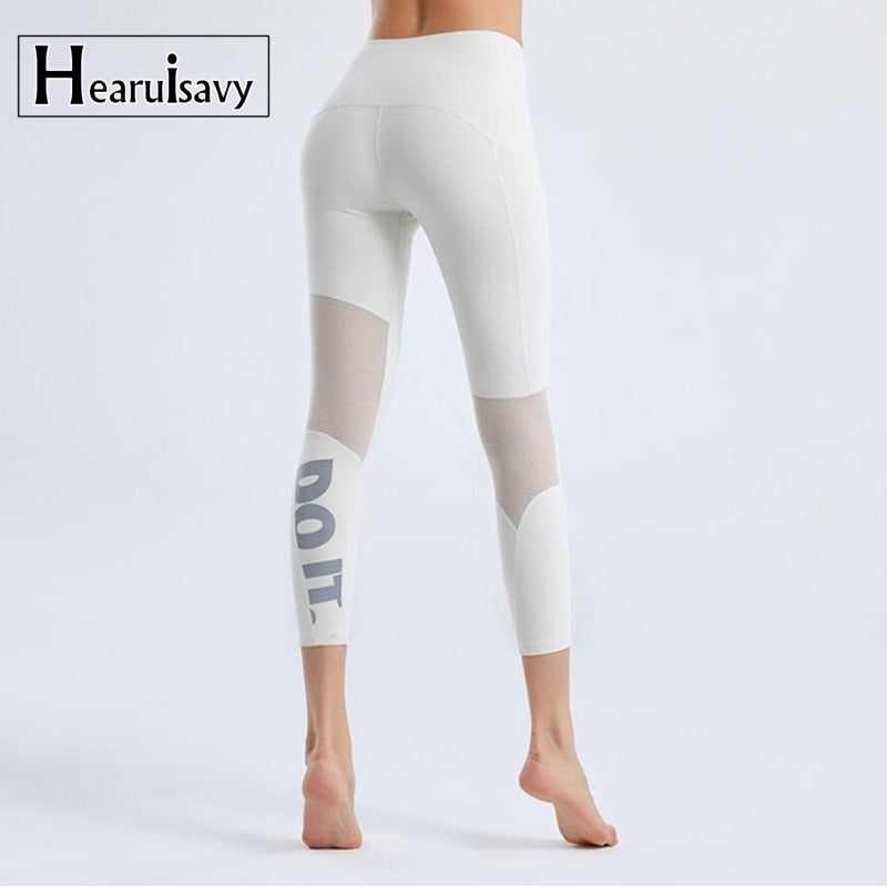 Summer New Tight Yoga Pants Female Mesh Stitching Pilates Leggings Letter Printing Elastic Thin Running Fitness Leggings Women