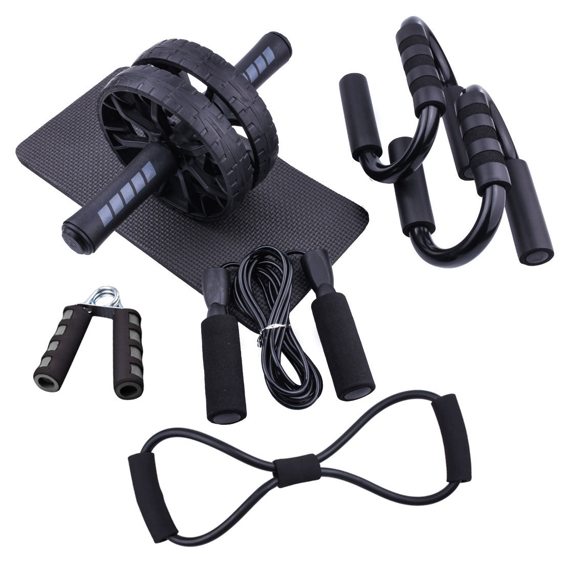 Abdominal wheel, kneeling pad, gripper, push-up stand, skipping rope, figure-of-eight puller