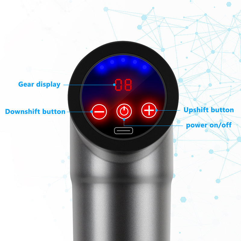 This massage gun comes in three attractive colors - bright red, matte black, and electro-optical gray, allowing you to choose the one that suits your style. Its sleek and ergonomic design ensures a comfortable grip and easy control.