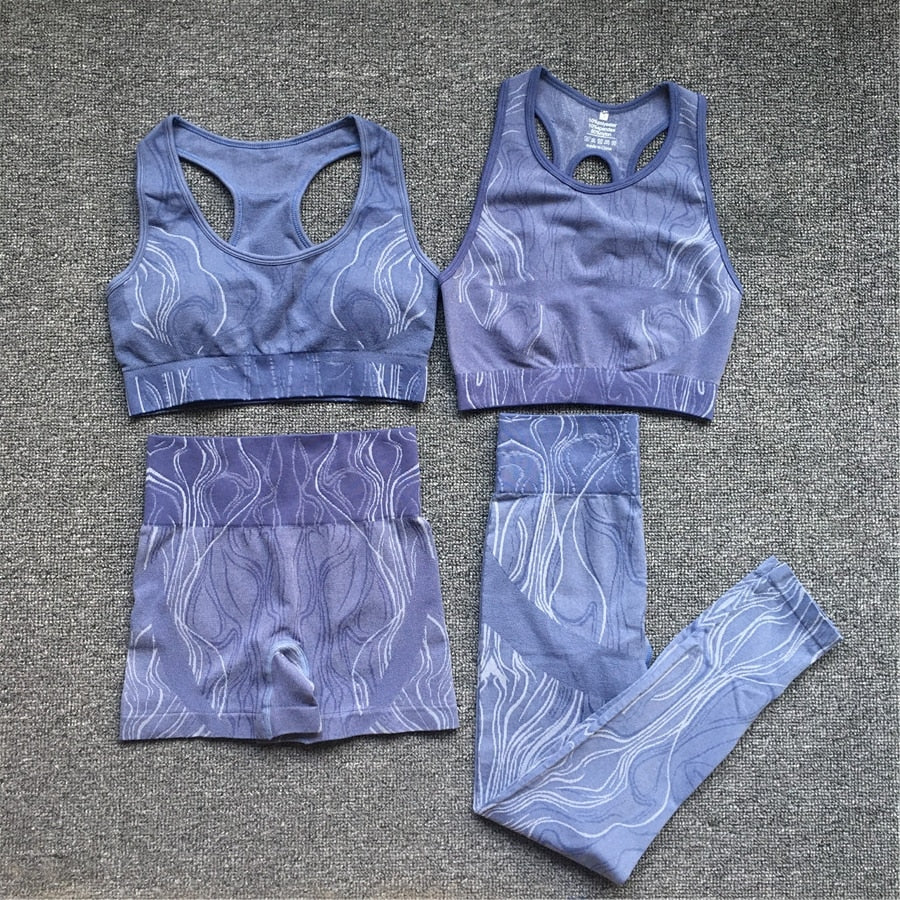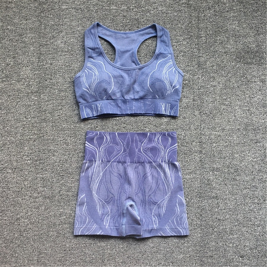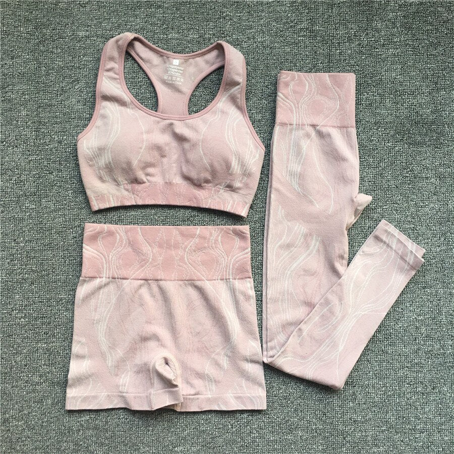 1//2/3Pieces Water Ripples Mercury Yoga Women Gym Fitness Clothing Shorts Sports Bra Gym Suits Femme Sports Set Sportswear