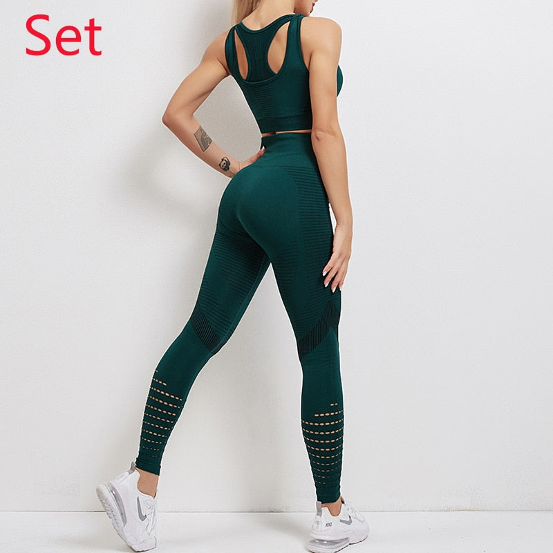 The breathable fabric and quick-dry feature ensure that you stay comfortable and dry throughout your workout. Whether you're hitting the gym or practicing yoga, this set is sure to keep you looking and feeling great.