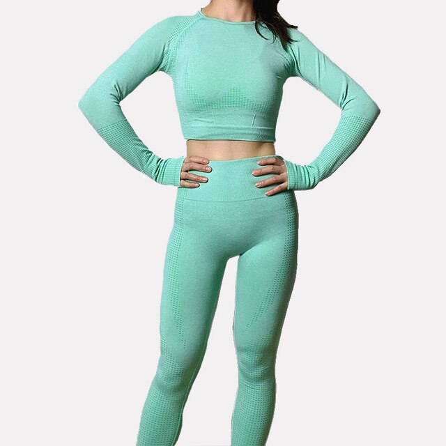 Women Vital Seamless Yoga Set Gym Clothing Fitness Leggings+Cropped Shirts Sport Suit Women Long Sleeve Tracksuit Active Wear